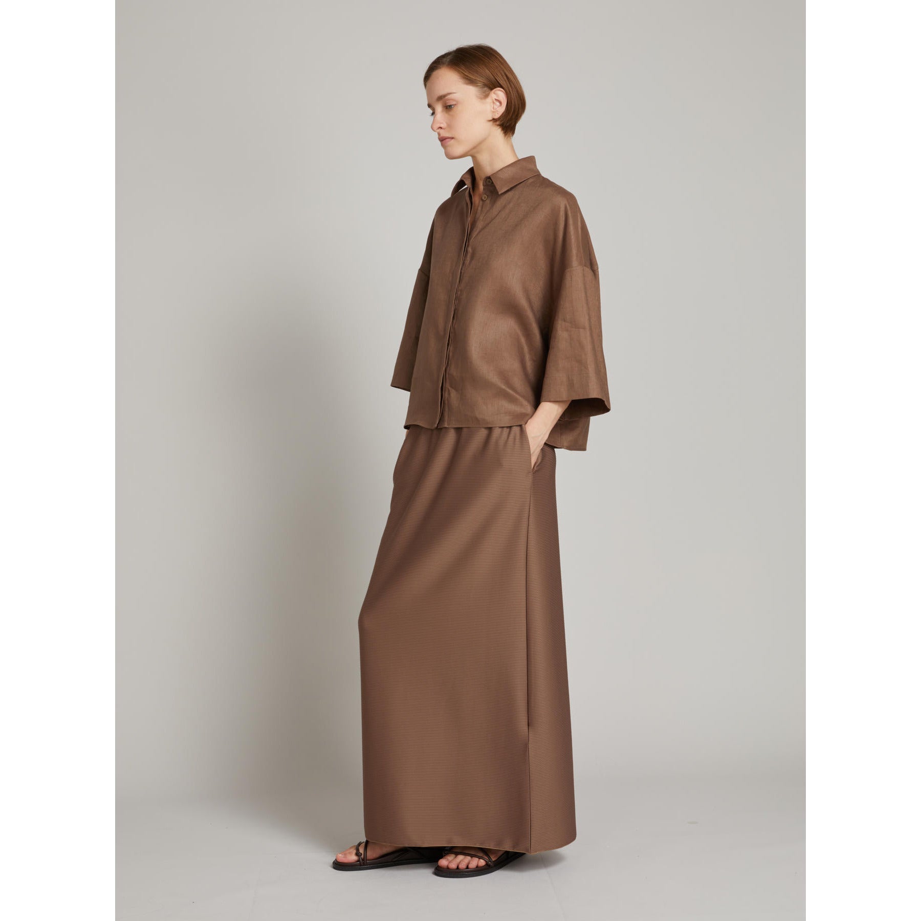 Max Mara MM RITO Dark Brown Pure linen canvas shirt