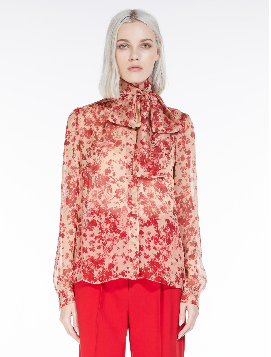 Max Mara Studio Finish Red Printed silk foulard shirt