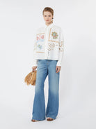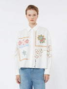 Max Mara Weekend FONTE Cotton blouse with lace and embroideries WHITE