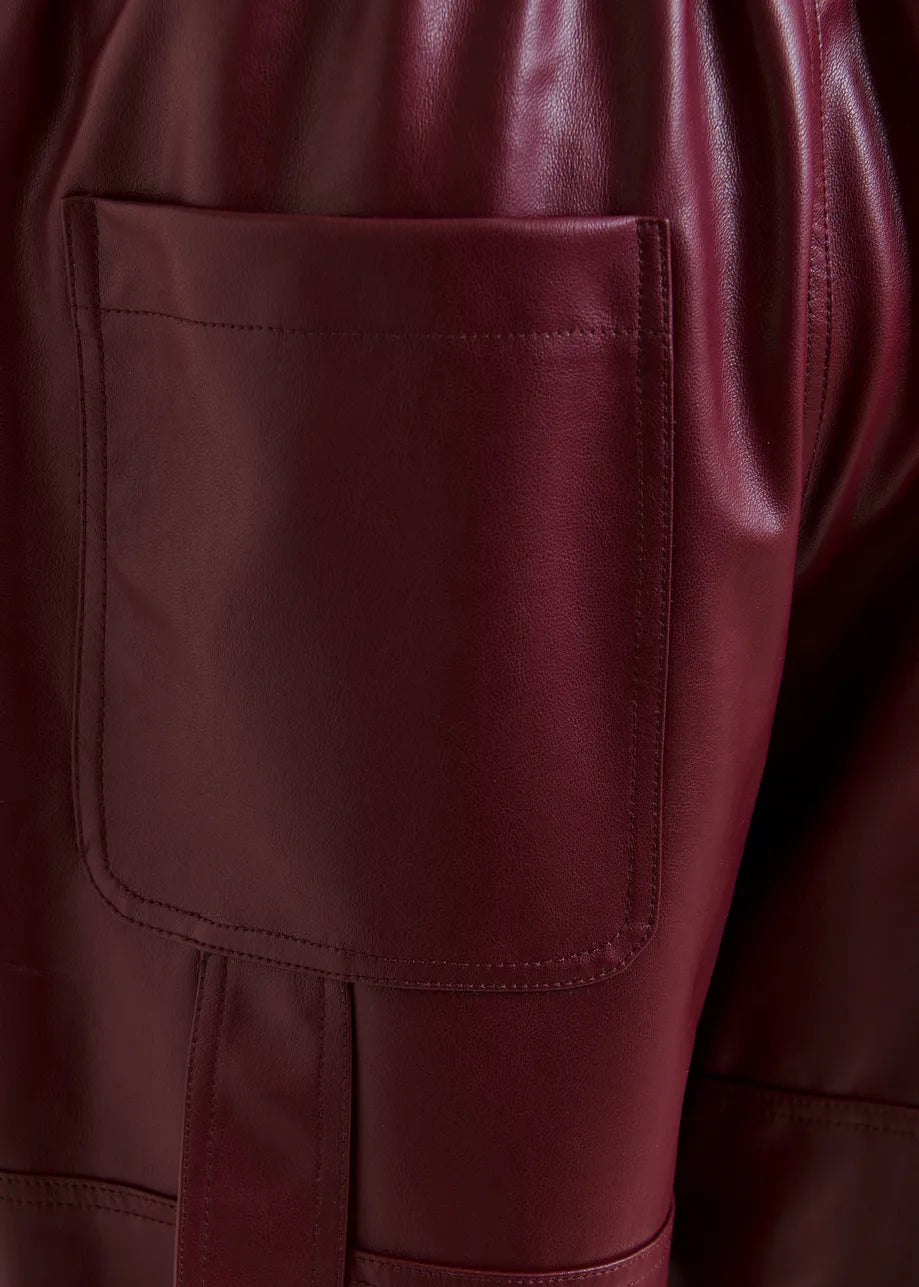 Essentiel Antwerp ITAO Burgundy faux leather tapered cargo pants