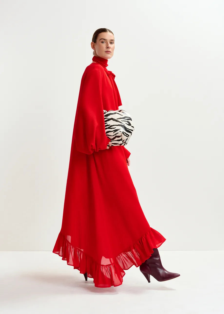 Essentiel Antwerp IFLOWER Red asymmetrical ruffle-hem maxi dress with pussy-bow tie