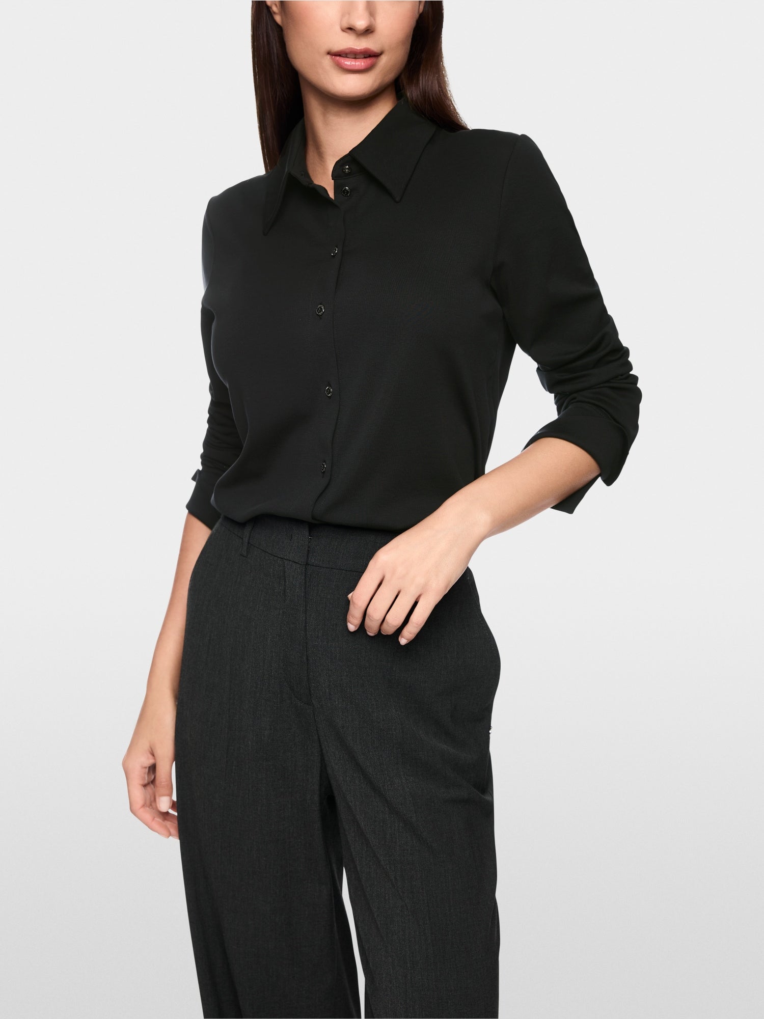Timeless and versatile: this stretch cotton shirt blouse is extremely comfortable to wear. Slightly tailored with a classic row of buttons and elegant single-button cuffs, it is perfect for business and everyday wear. Ideal for pairing with a skirt or trousers.