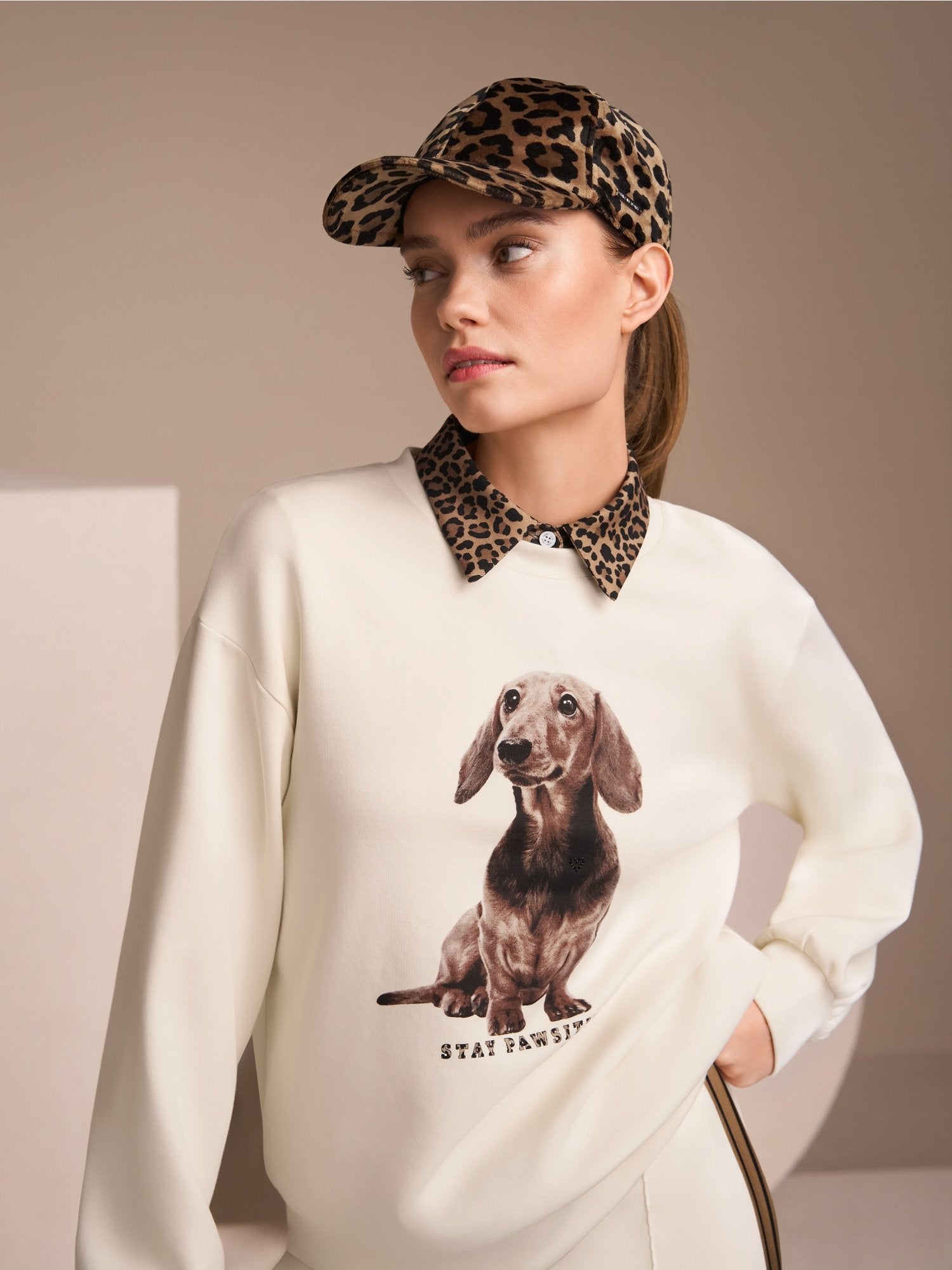 Marc Cain Bright Ecru Sweatshirt with dachshund print