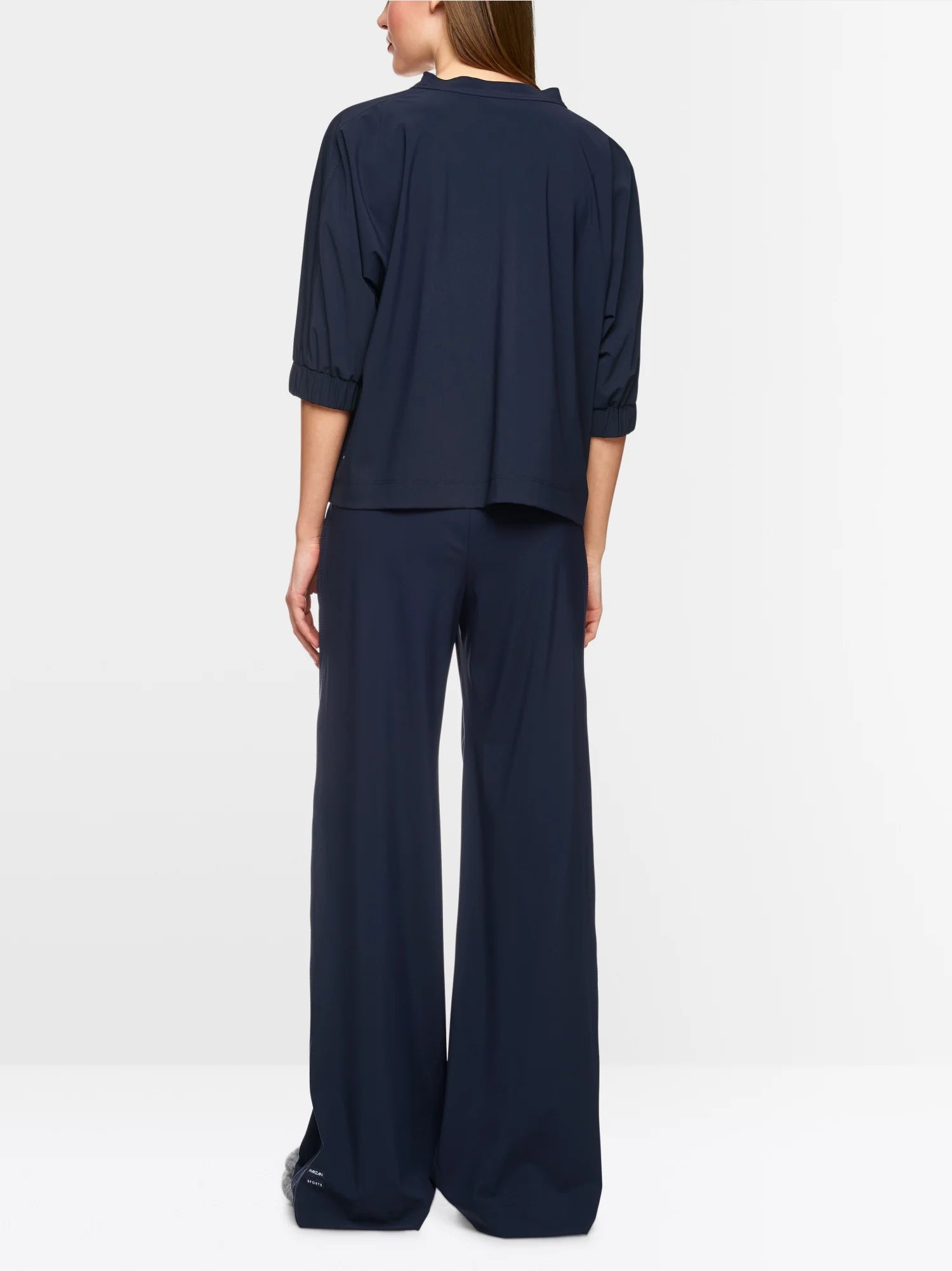 A feminine shirt that impresses with its lightness and flowing drape. A ribbon is incorporated into the neckline that can be tied into a bow. Mini slits at the sides and elasticated cuffs complete the style. This shirt is from the Rethink Together sustainability label.