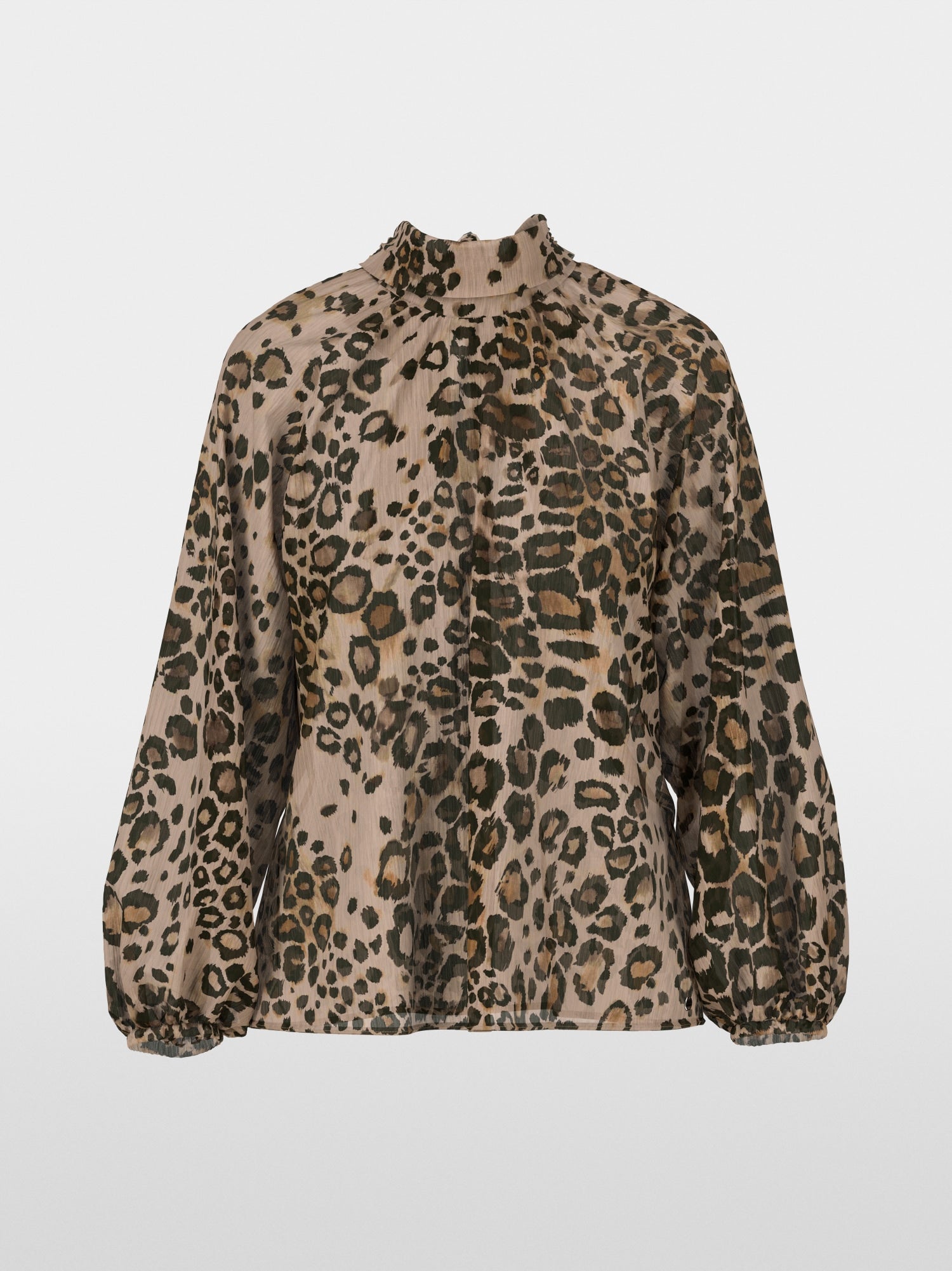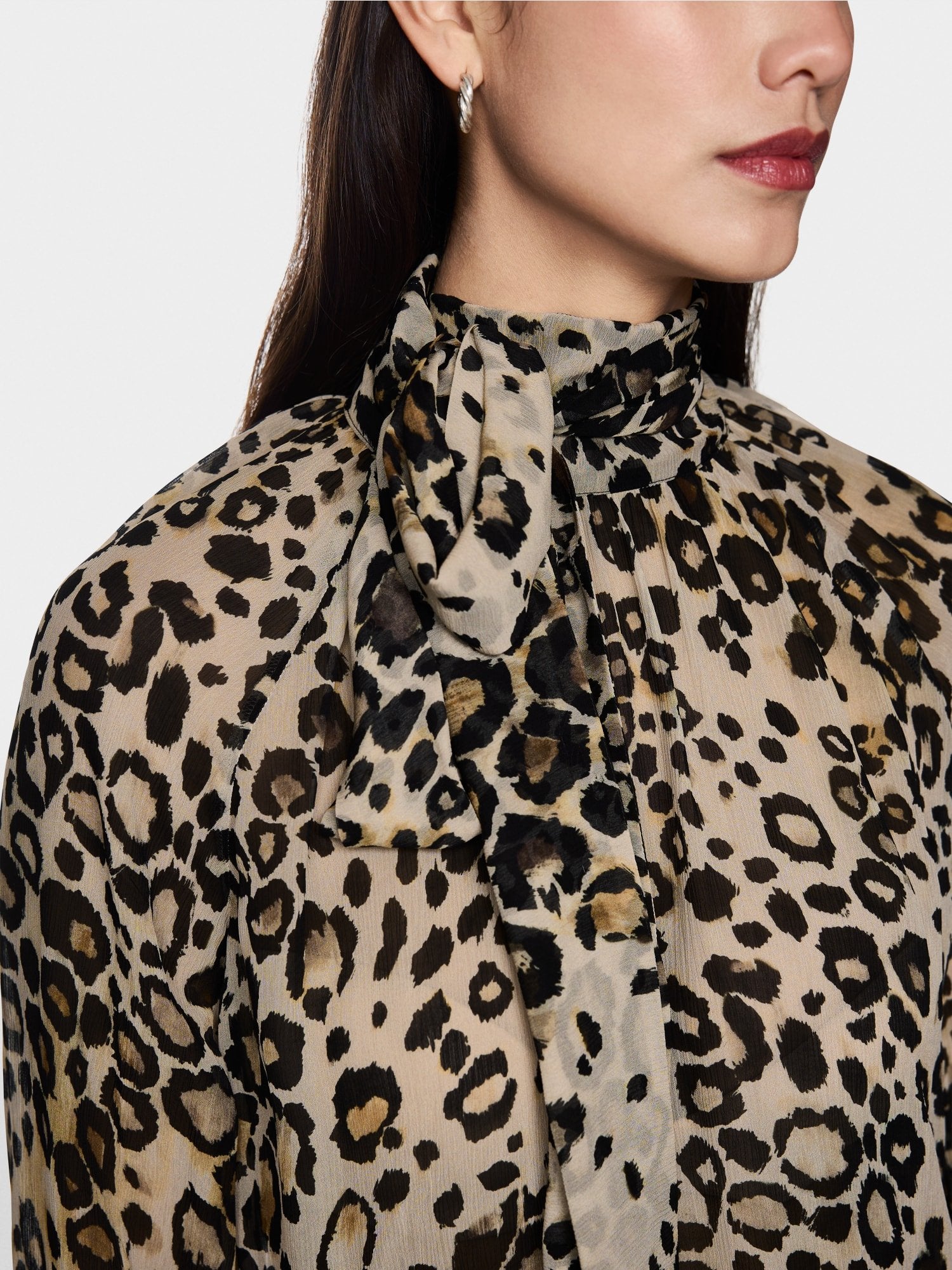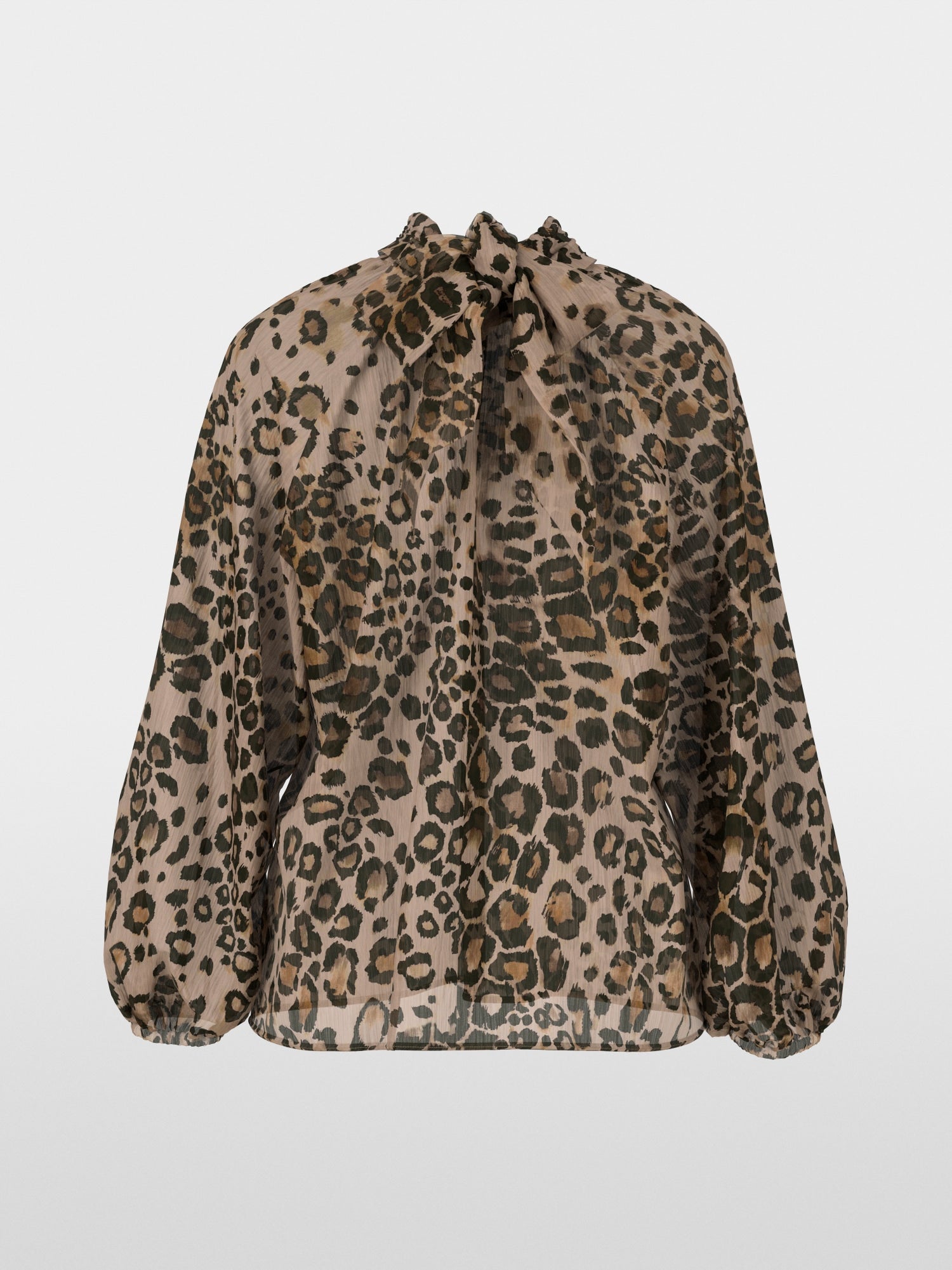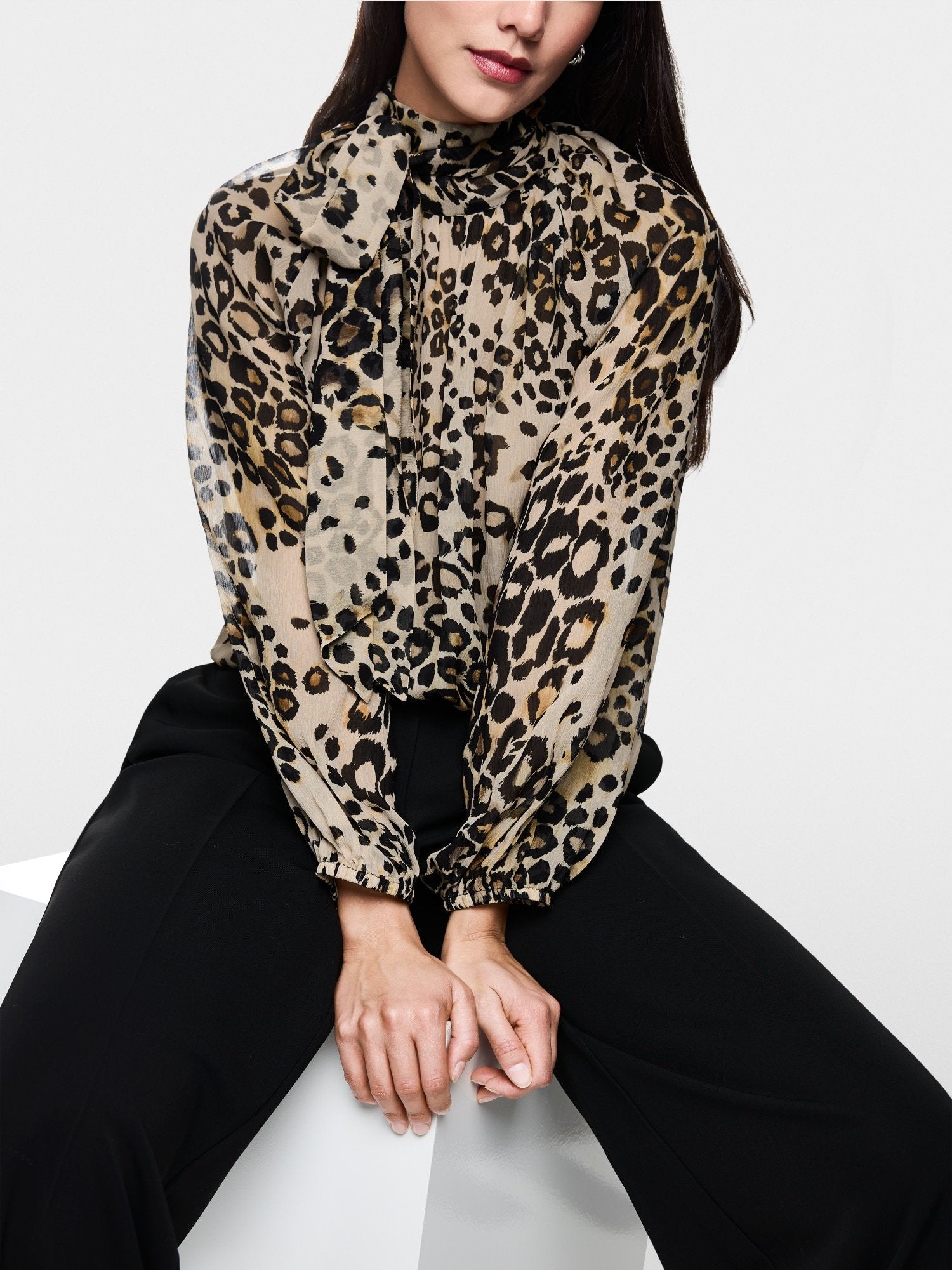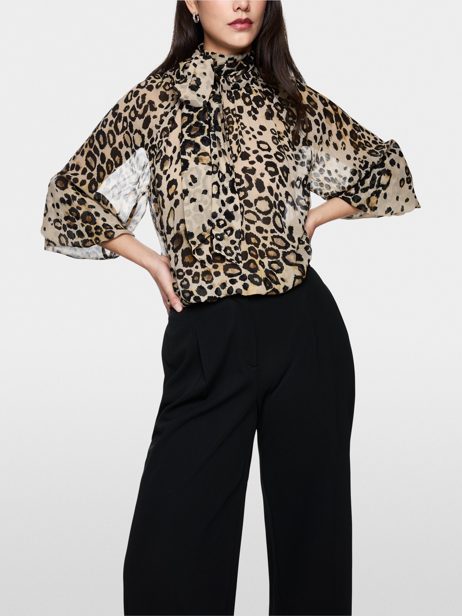 Modern bow blouse with leopard print and semi-transparent look. Its loose cut ensures a comfortable fit, while the balloon sleeves with elasticated cuffs and the classic bow collar add stylish accents. A contemporary blouse for a confident, fashionable look.