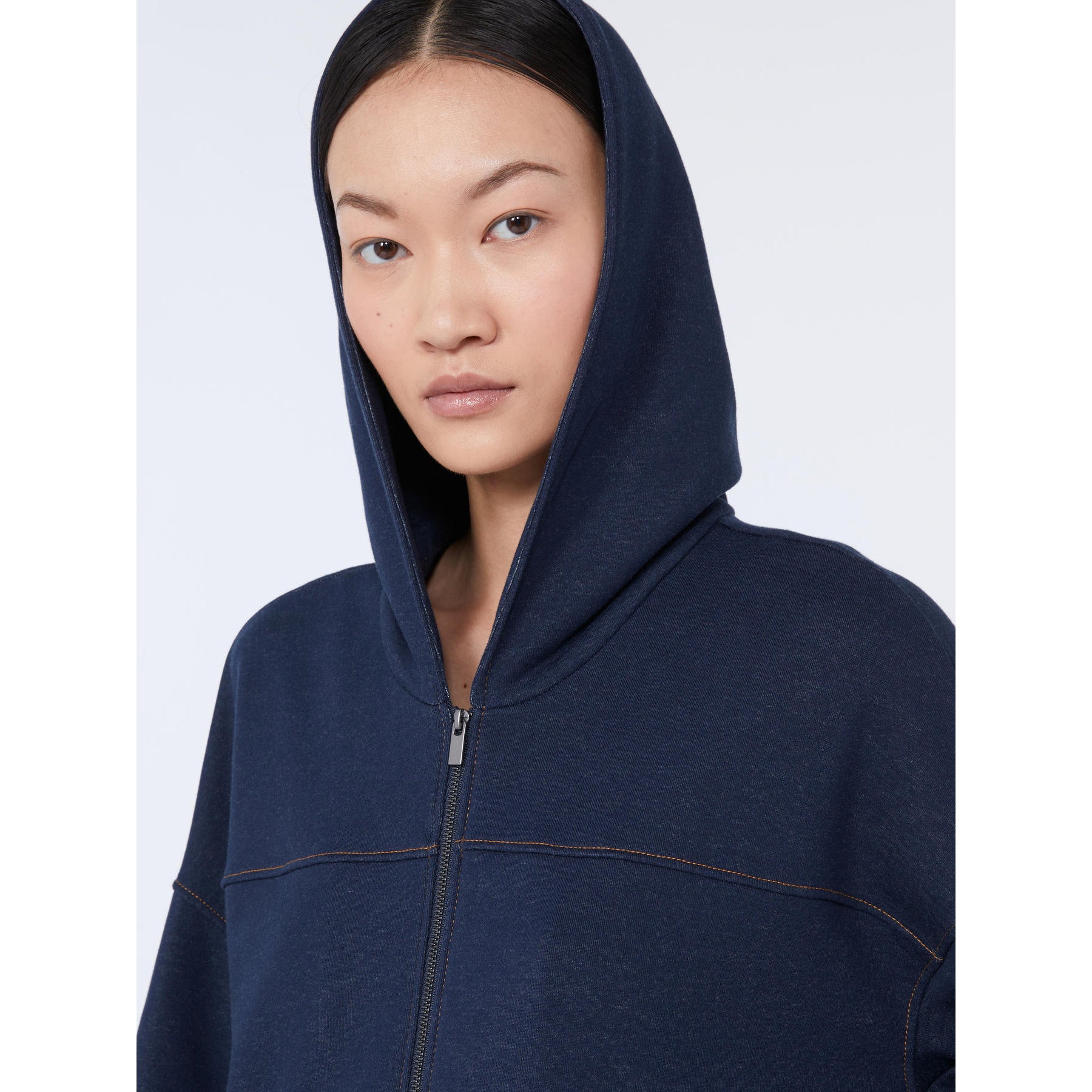 Crafted from soft cotton with a distinctive denim-look texture, this Max Mara MM YALE hooded sweatshirt combines casual elegance with refined details. Featuring a relaxed fit, a hooded collar, and long cuffed sleeves, it offers both comfort and style. The zip fastening and welt pockets enhance functionality, while the yoke detail on front and back adds subtle sophistication. Ideal for a polished yet effortless look.