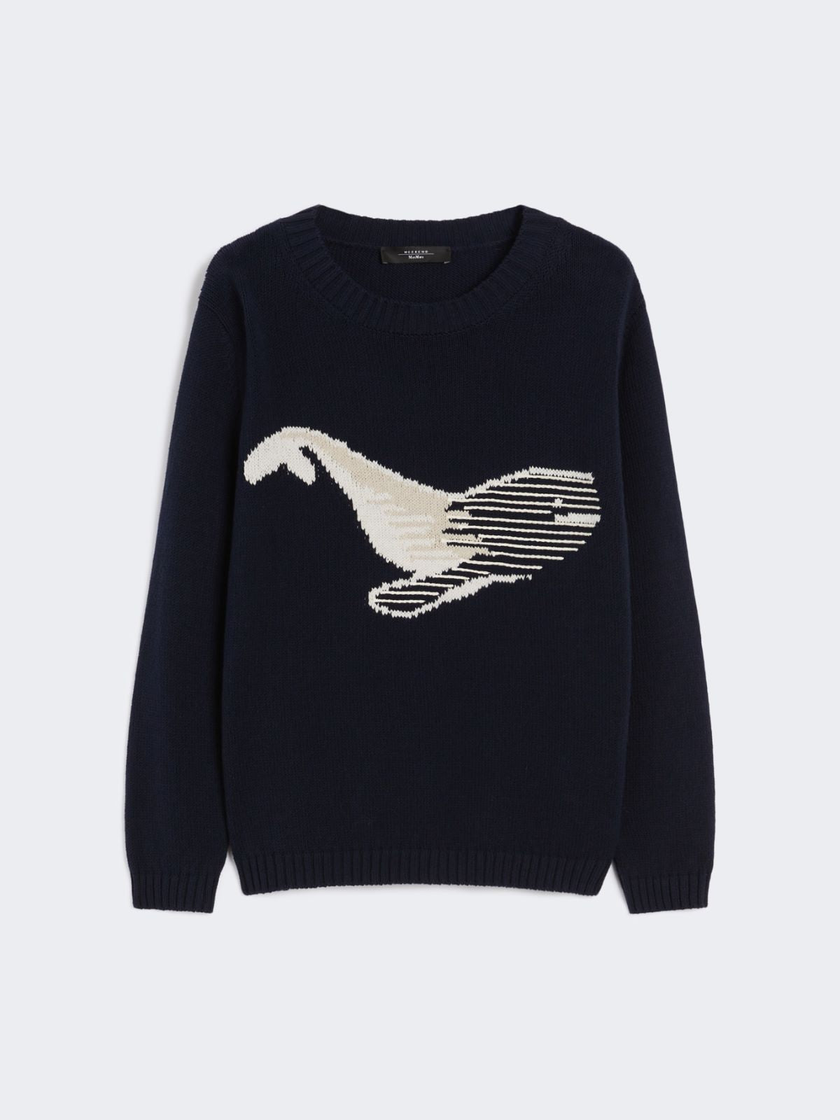 Max Mara Weekend NESPOLA Navy Cotton cordonnet sweater with Whale