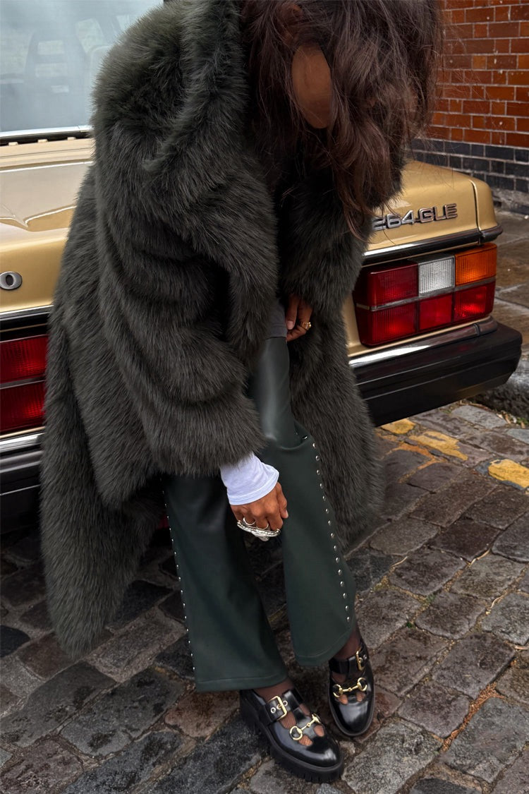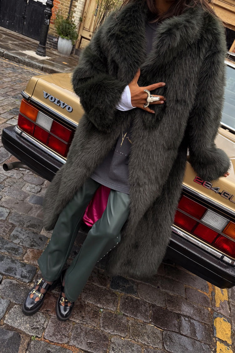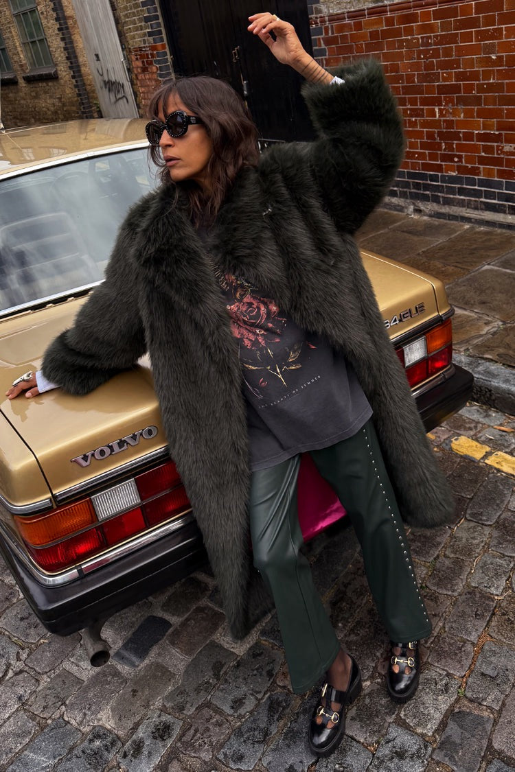 This coat is bringing the feel good dressing vibes straight to your autumn/winter wardrobe! The subtle green works effortlessly with the faux fur texture and in a relaxed silhouette, it's the perfect layering piece for dressing up or down. A definite statement piece that elevates the simplest of outfits.