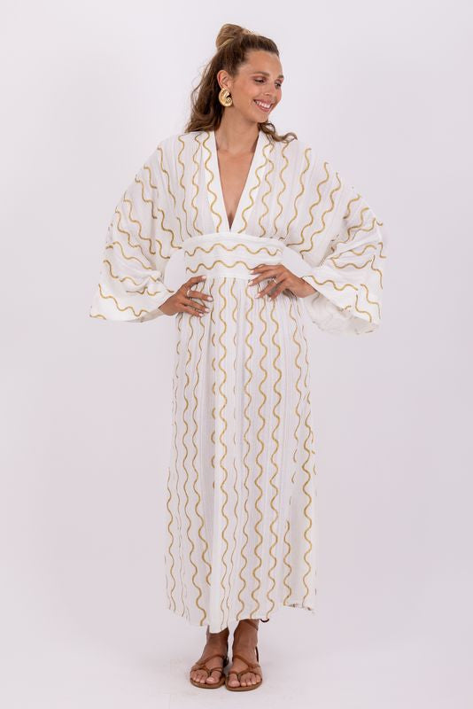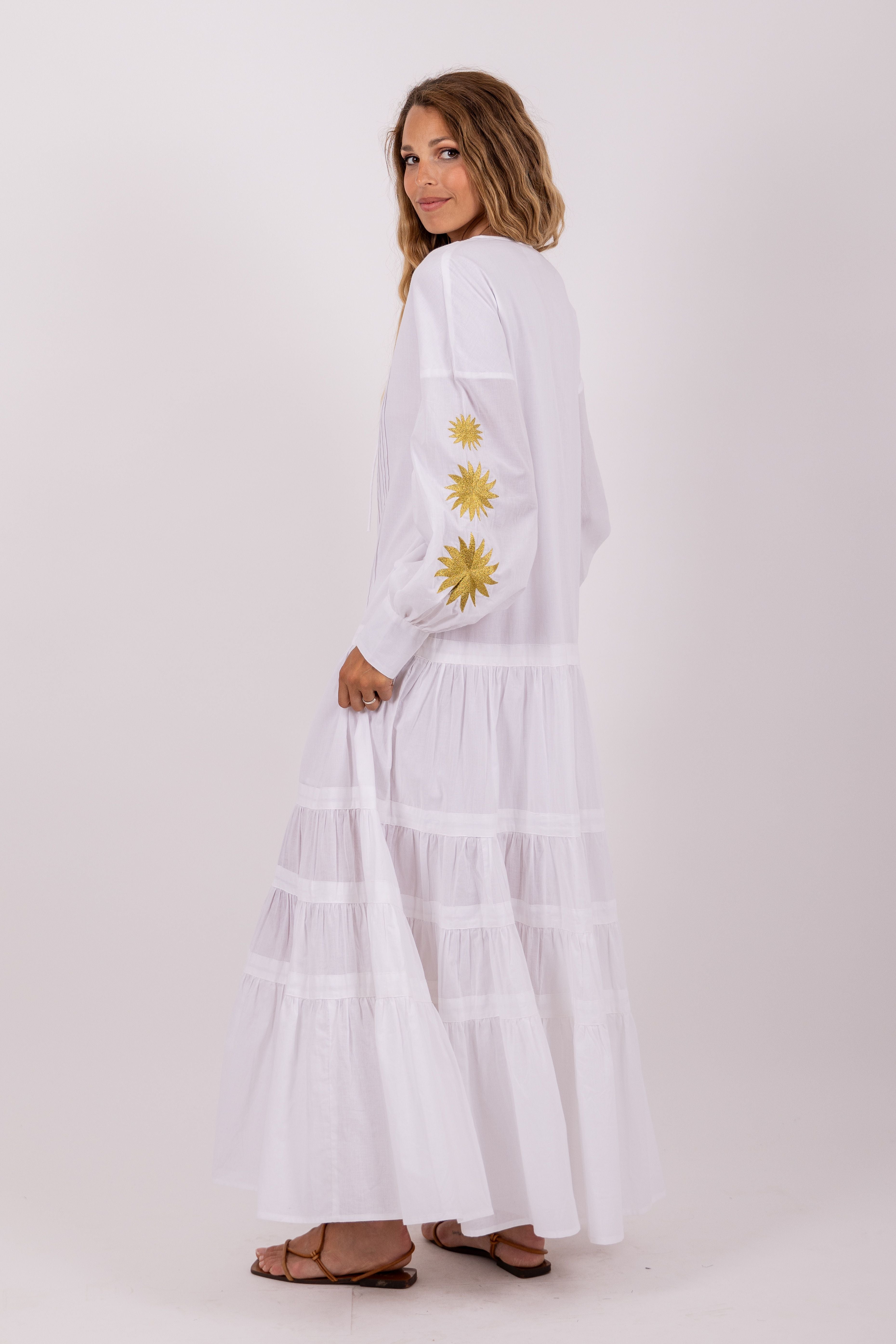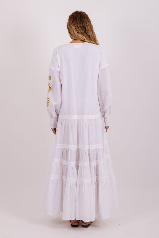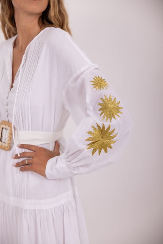 Sundress White & Gold Thais Long Dress