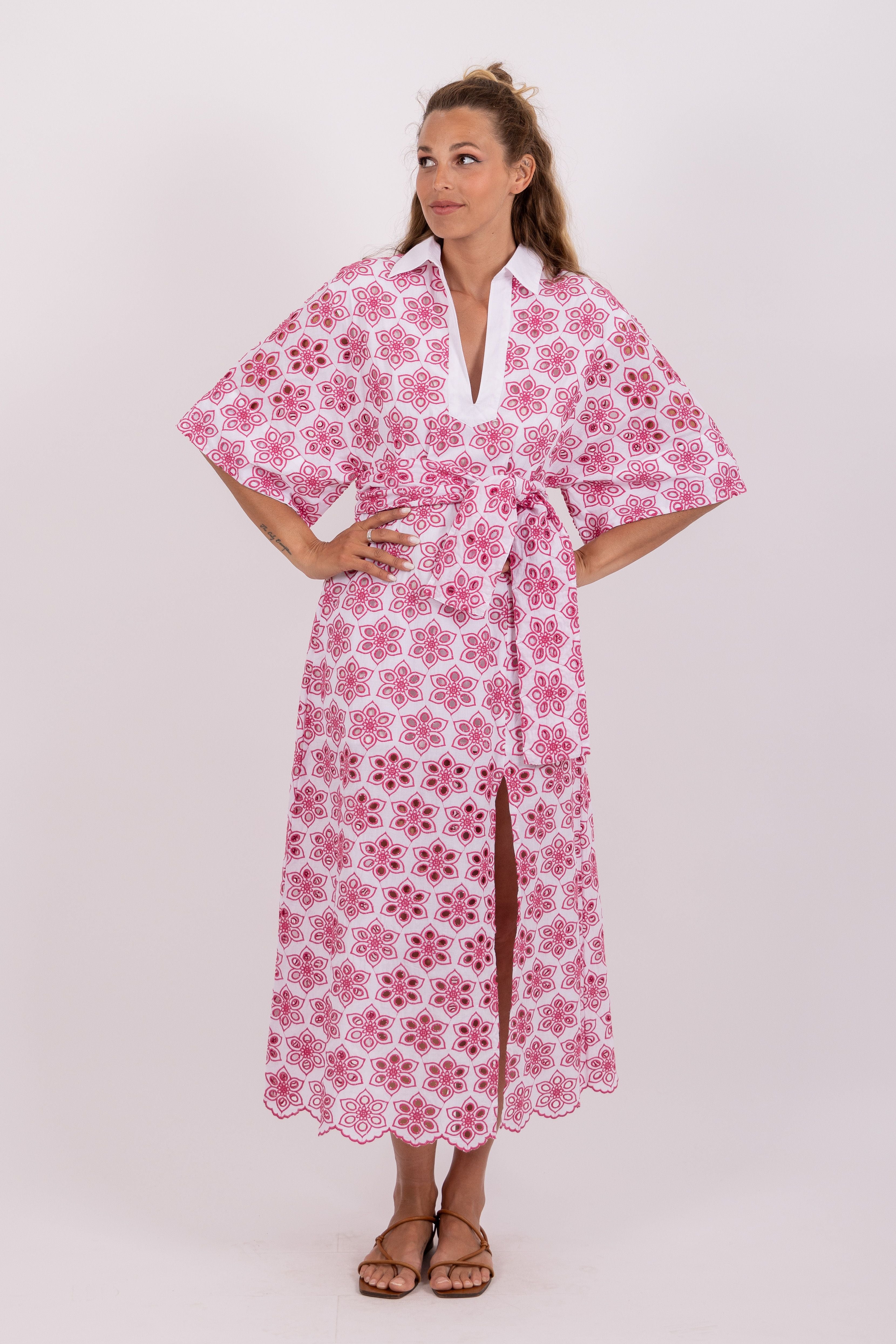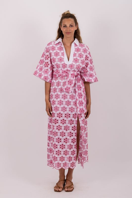 Sundress Soidee Eyelet Pink Long Dress