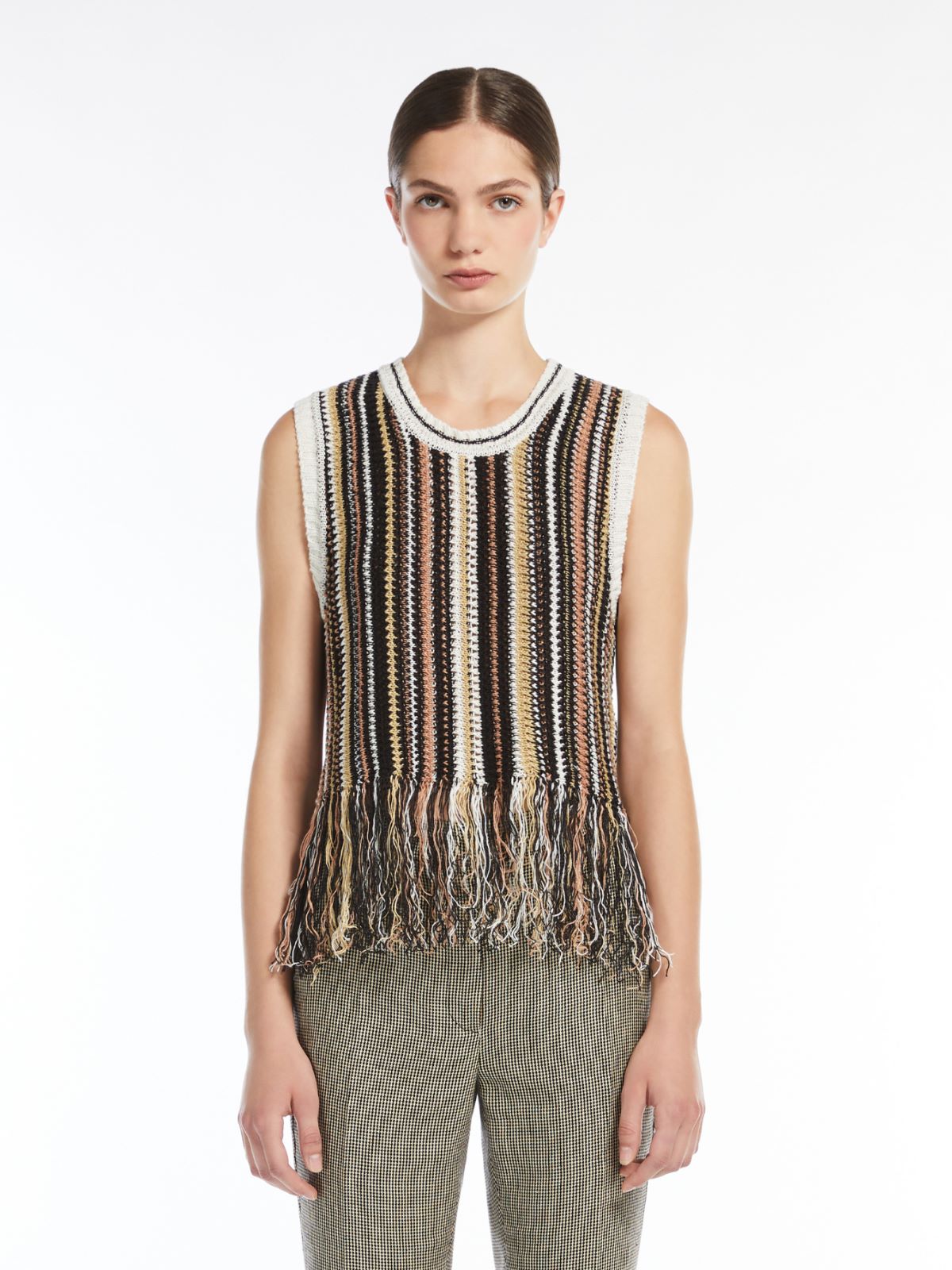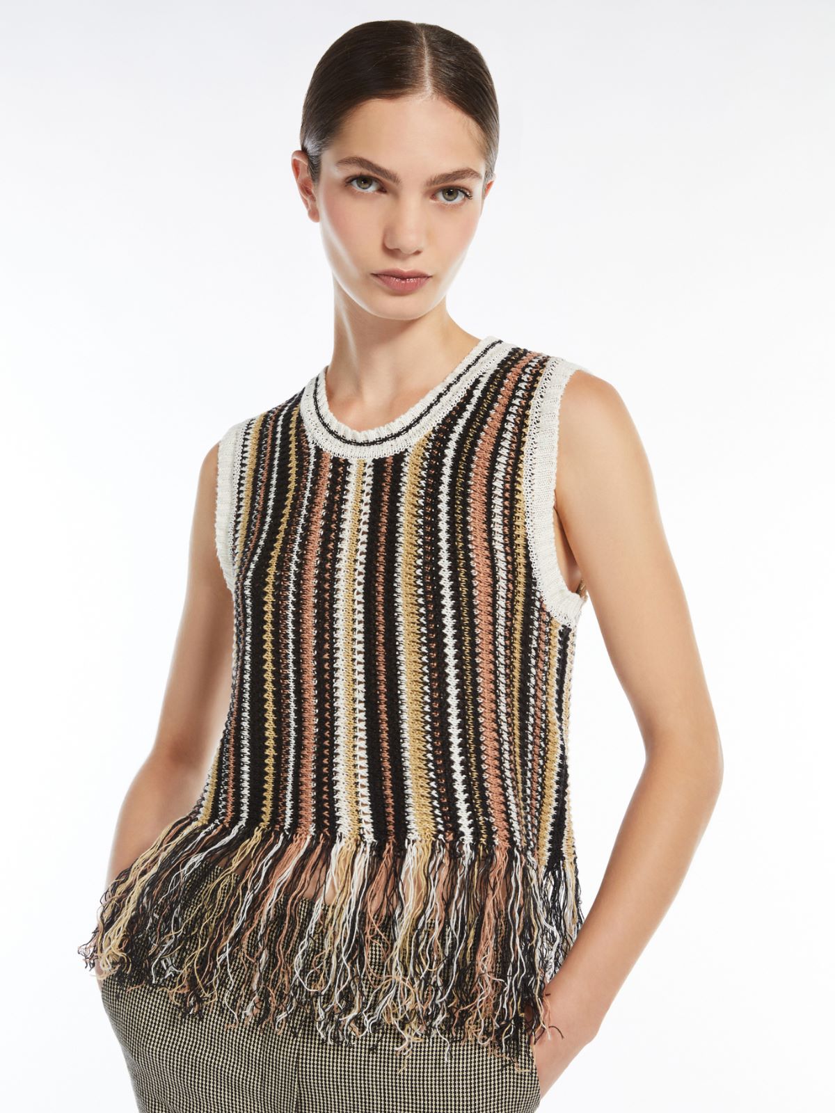 Max Mara Weekend Brown Stripe Navetta Linen Top With Fringes