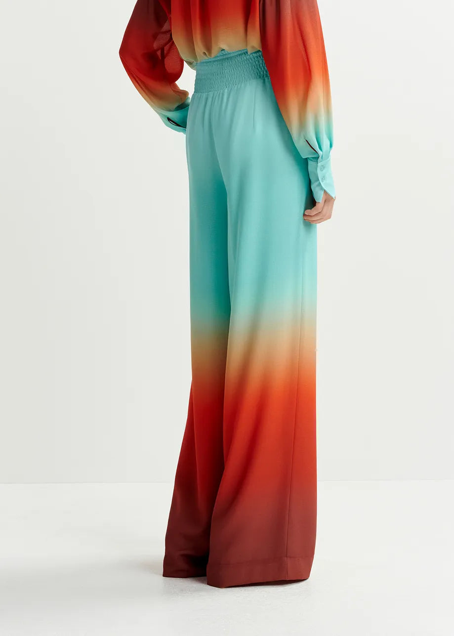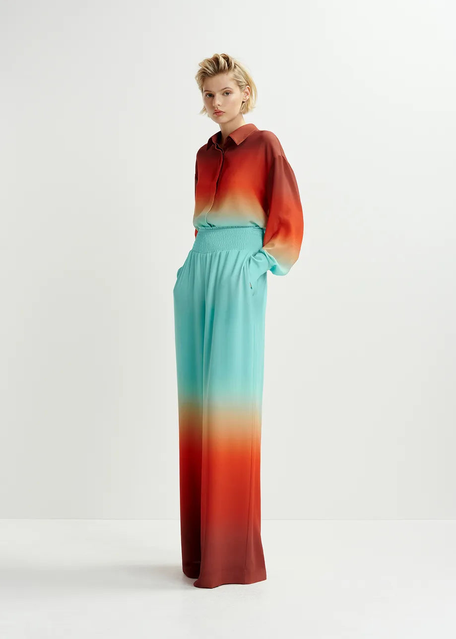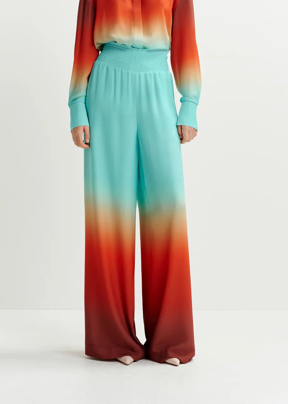 Essentiel Antwerp Hug Light blue and burned orange wide-leg pant with tie-dye print