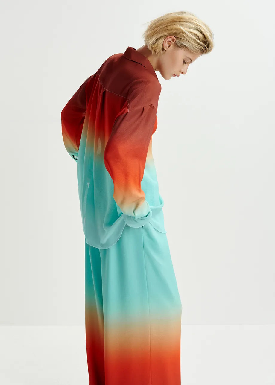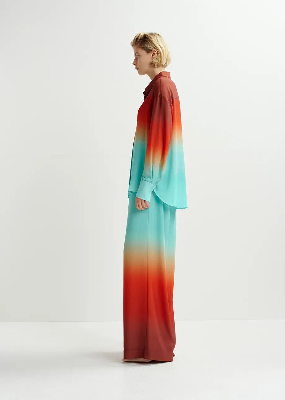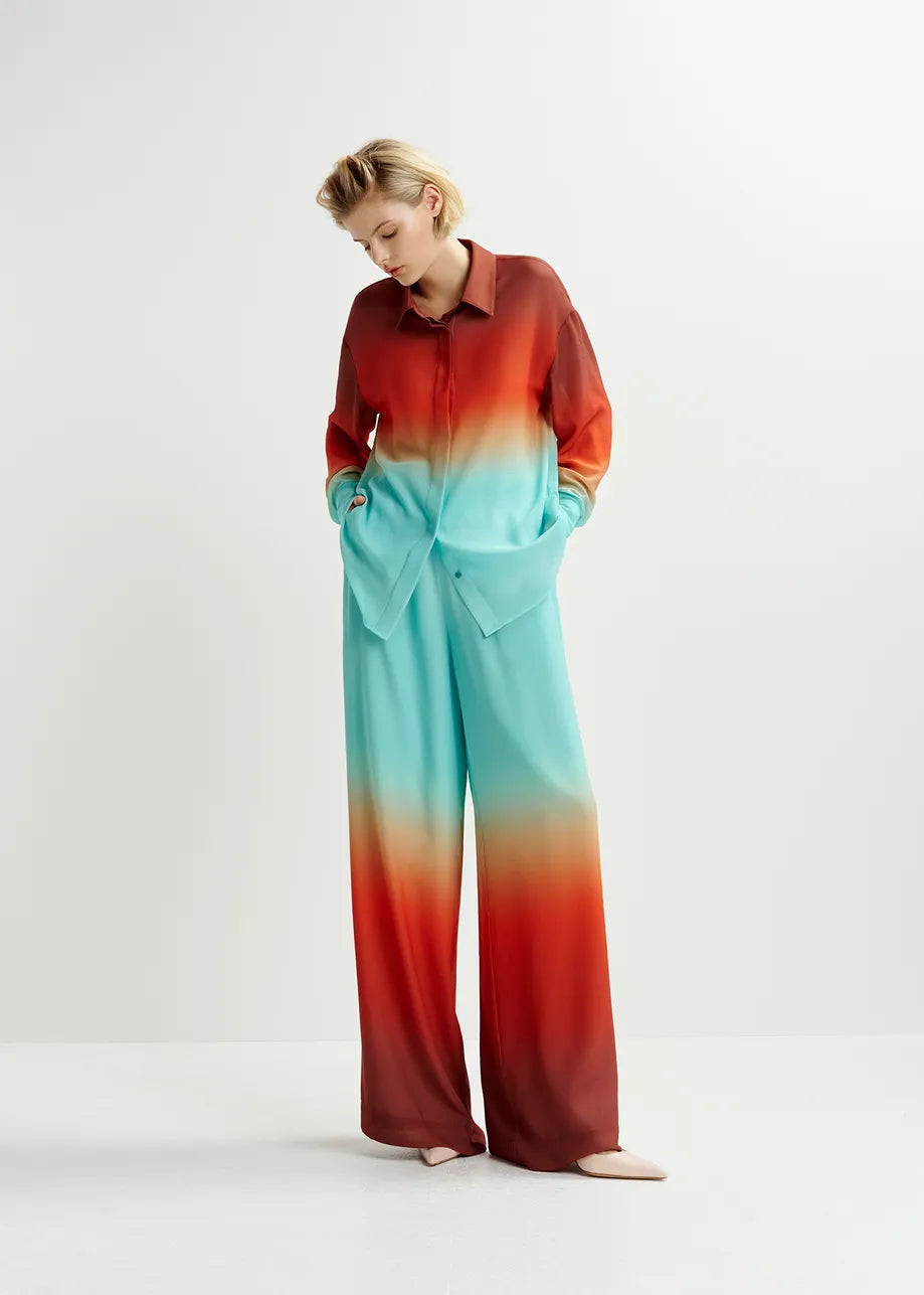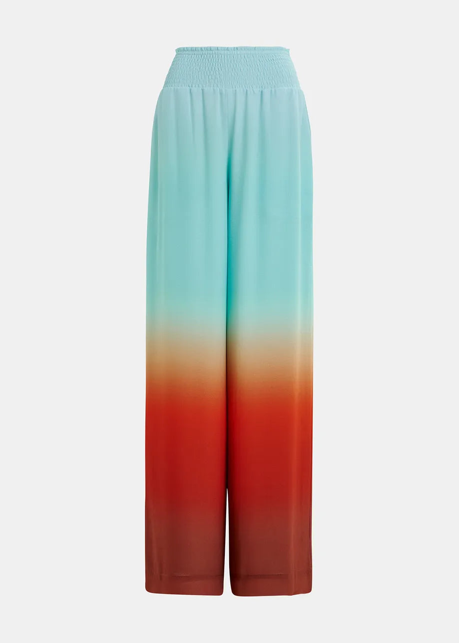Essentiel Antwerp Hug Light blue and burned orange wide-leg pant with tie-dye print