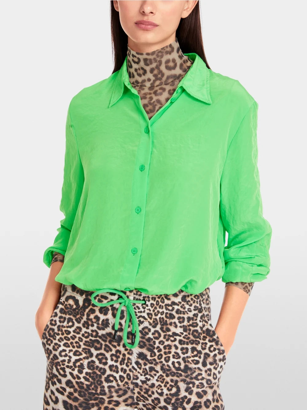 Marc Cain Dark Apple Green Light solid shirt blouse