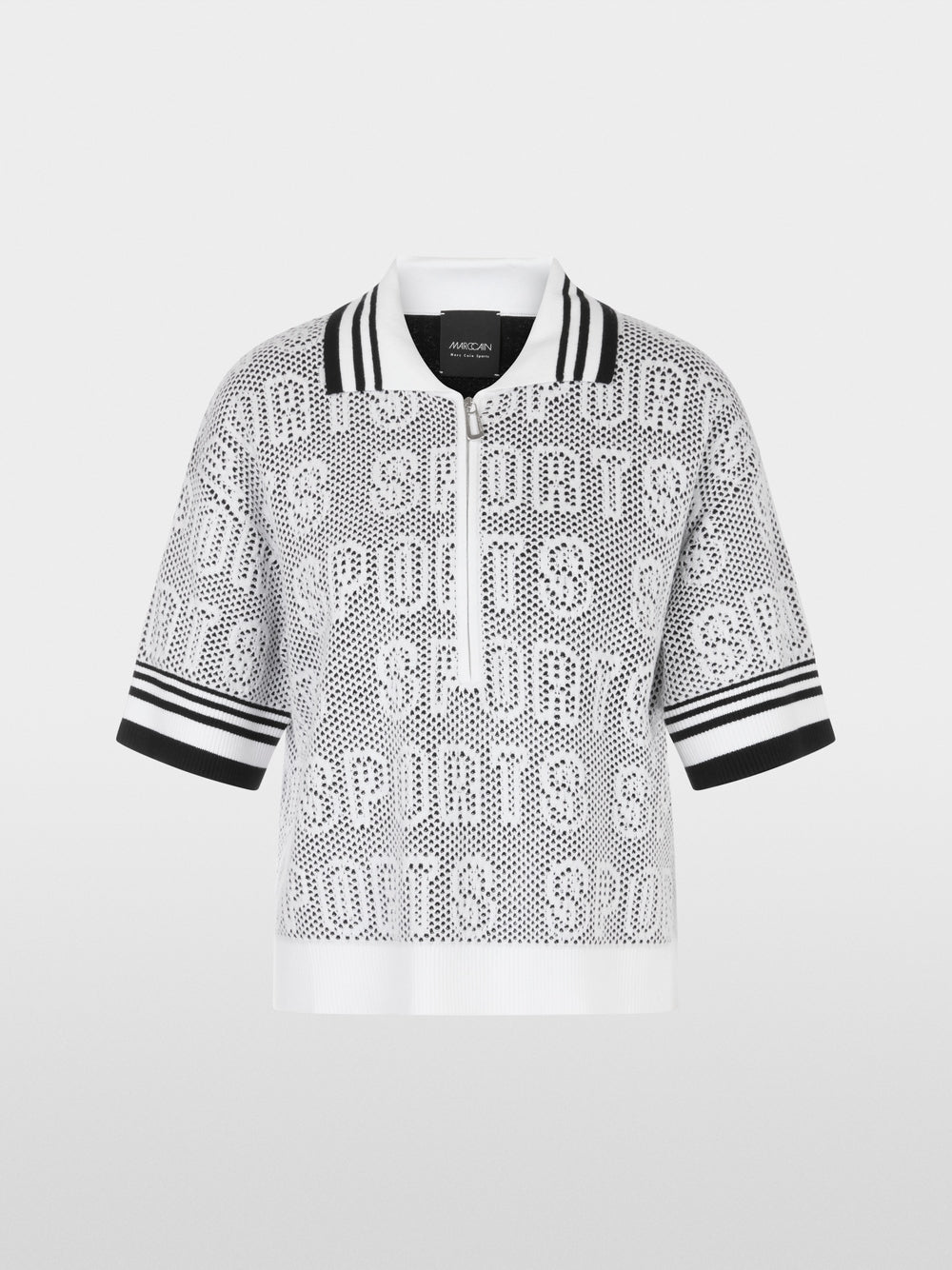 Marc Cain White & Black Wide polo shirt with zip