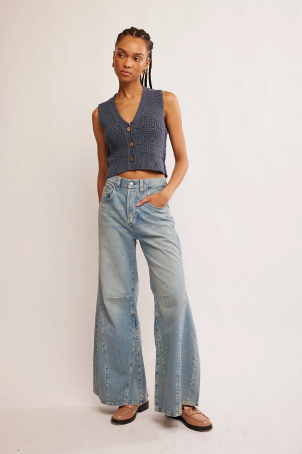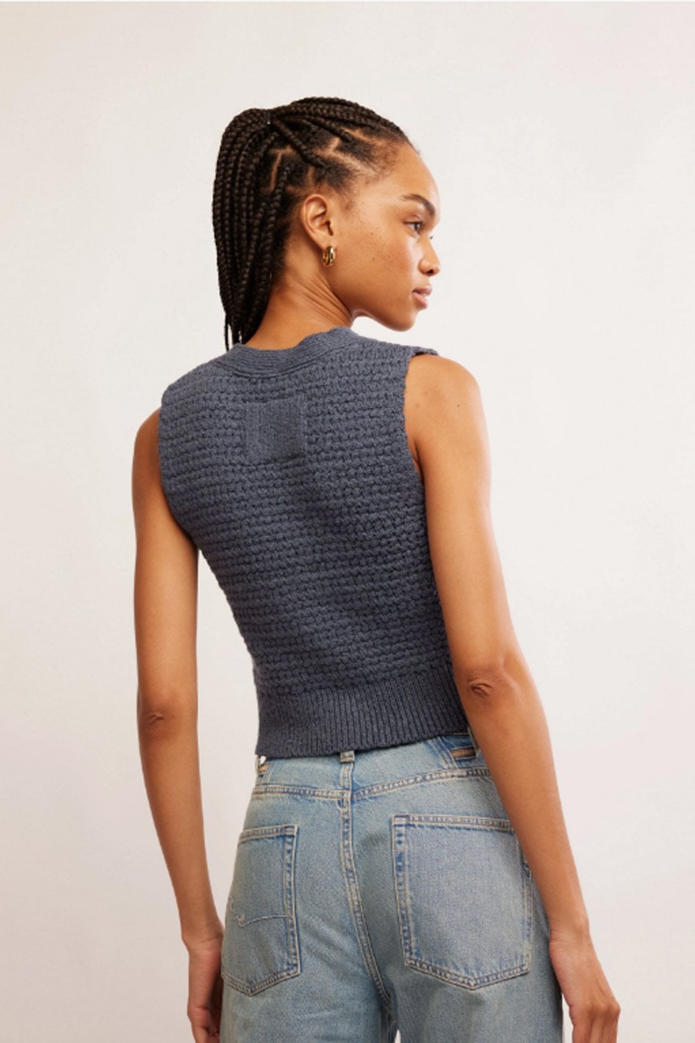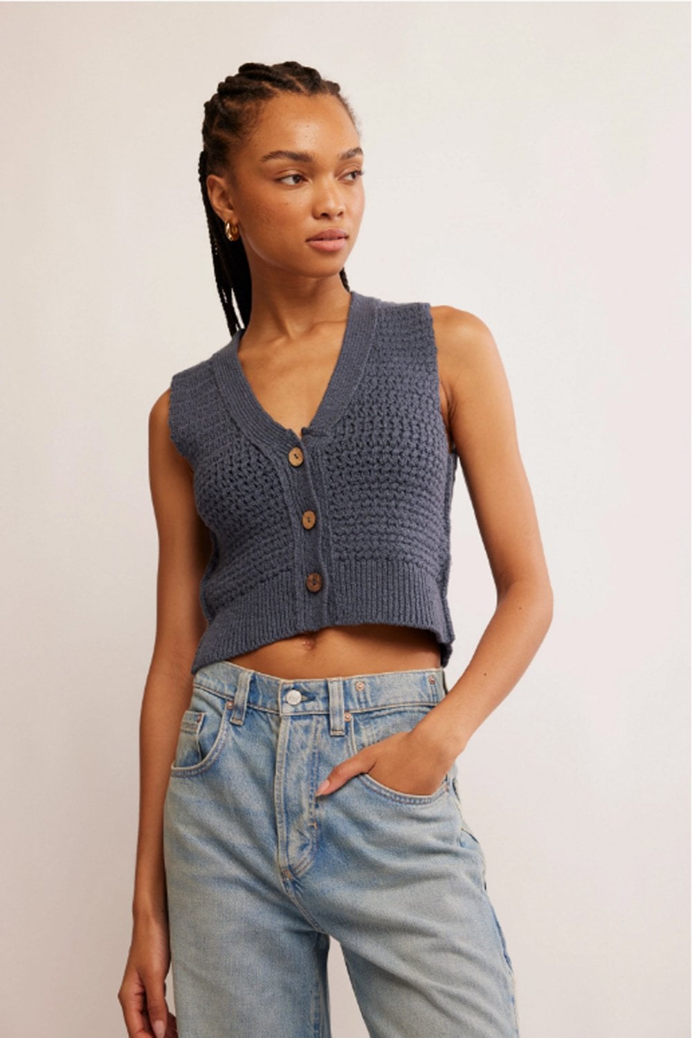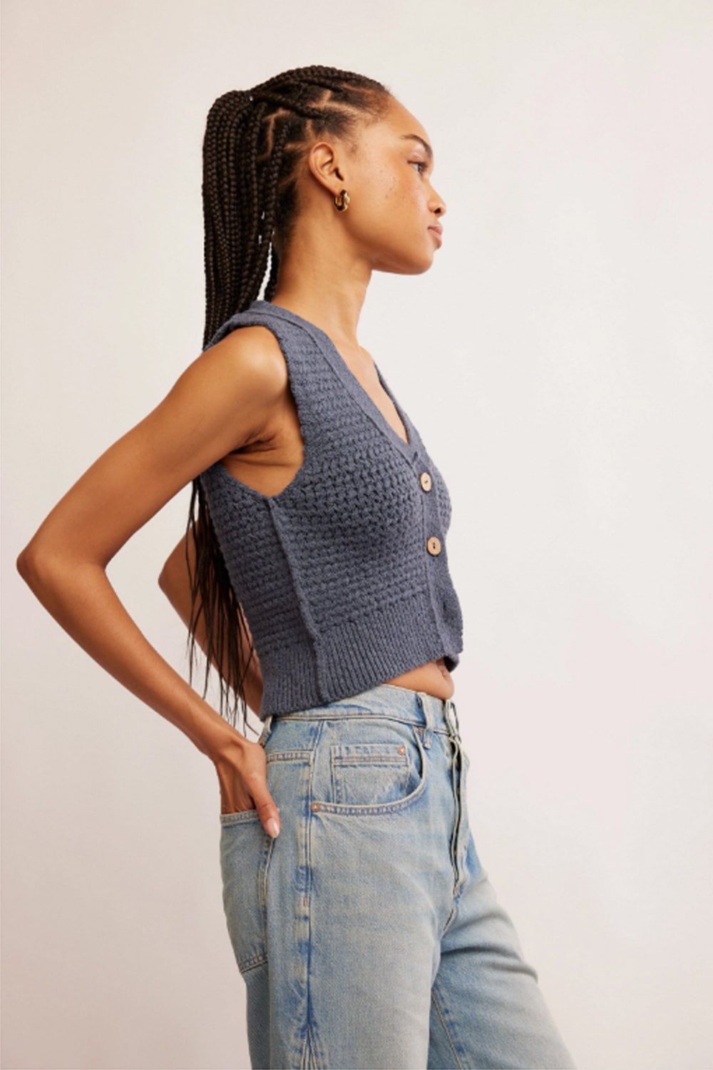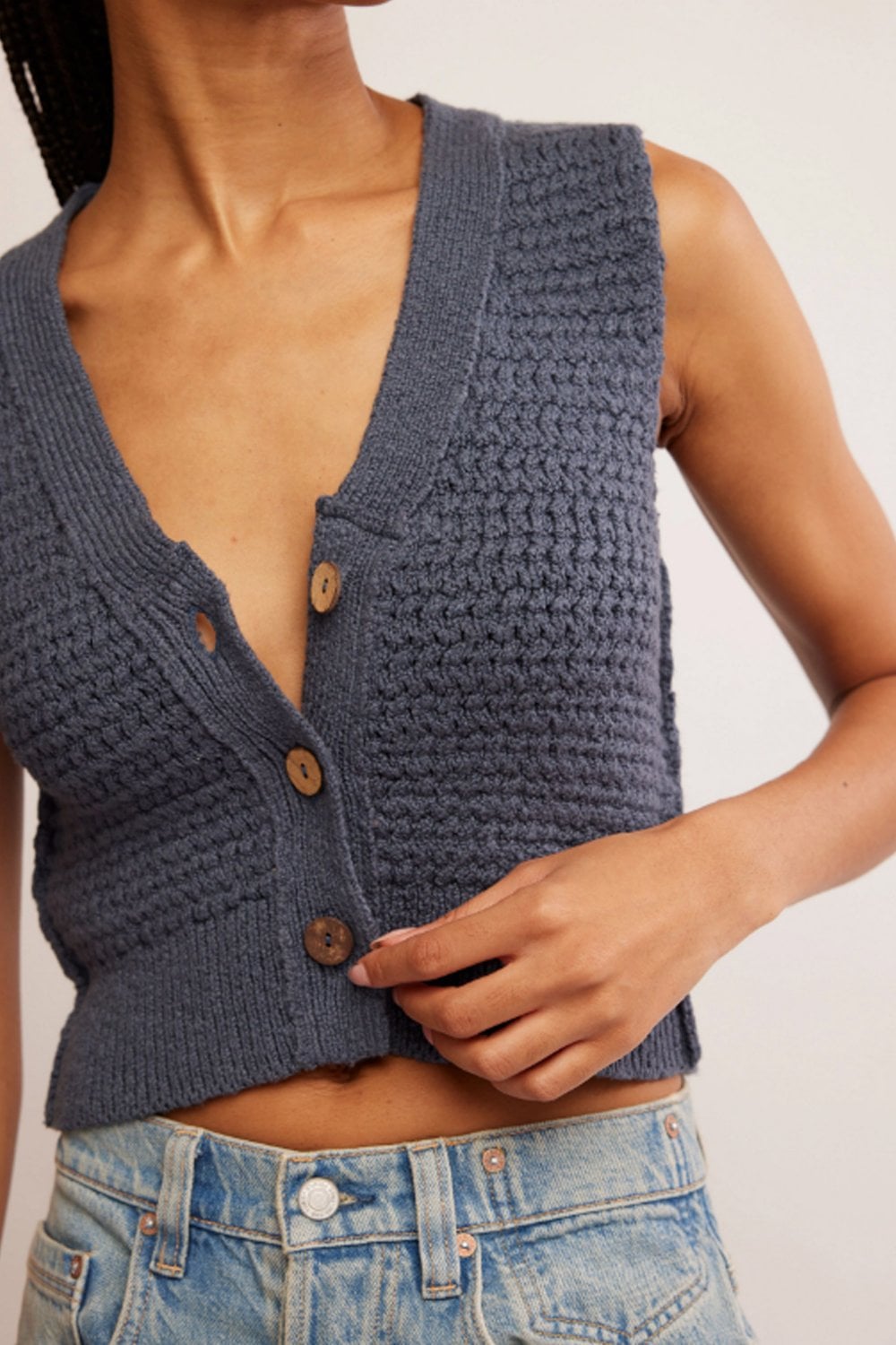 Your new favorite knit from our We The Free collection, this timeless vest features a cropped silhouette and deep V-neckline with button-front detailing.