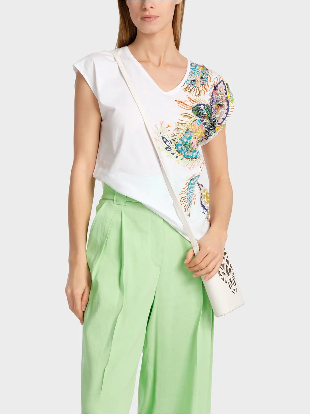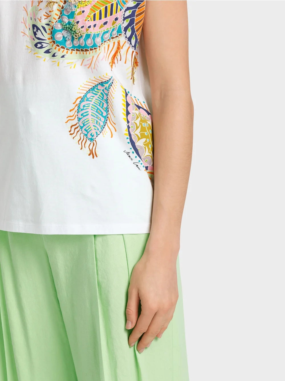 Marc Cain Beach House Close-fitting fancy leaf motif T-shirt