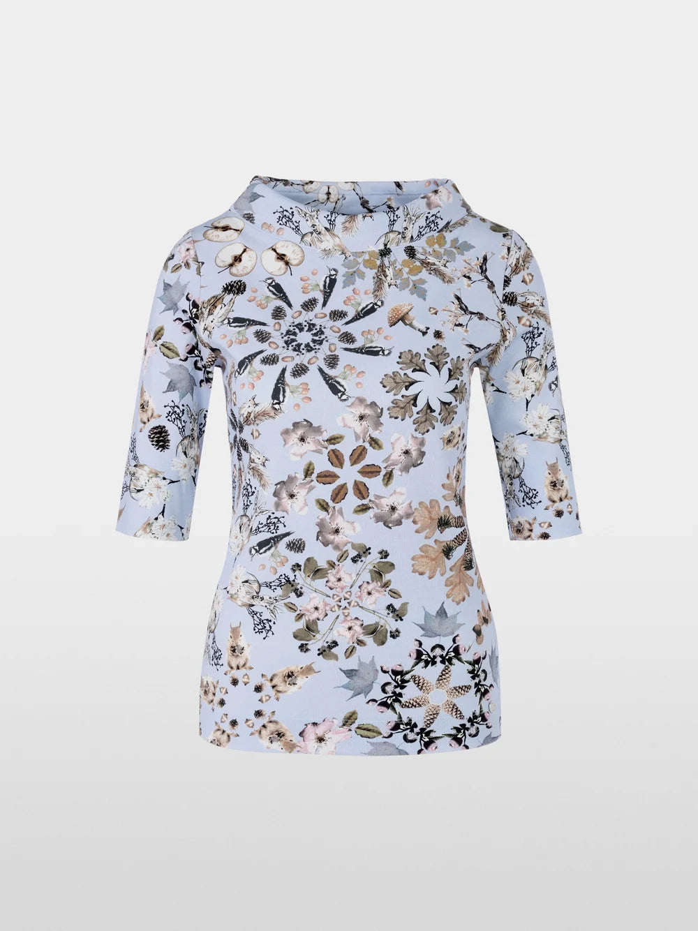 Marc Cain Blue Floral Body-hugging cotton rib T-shirt