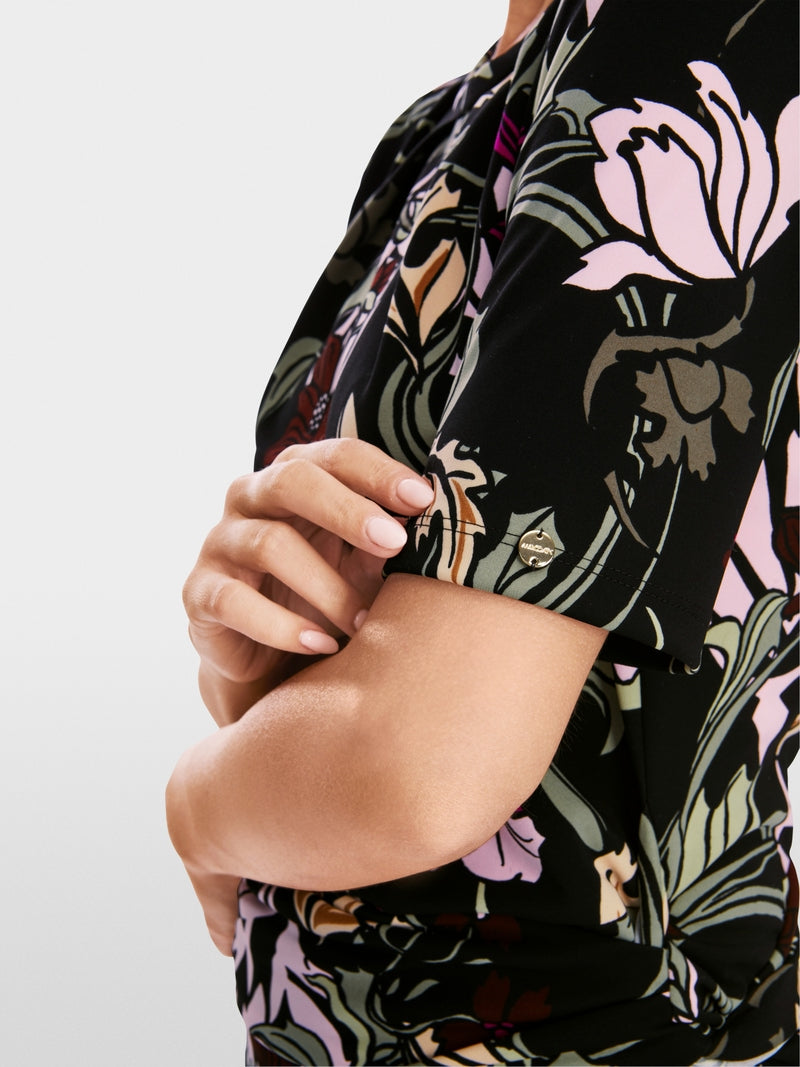 Marc Cain Black and Purple Floral Pattered Dress