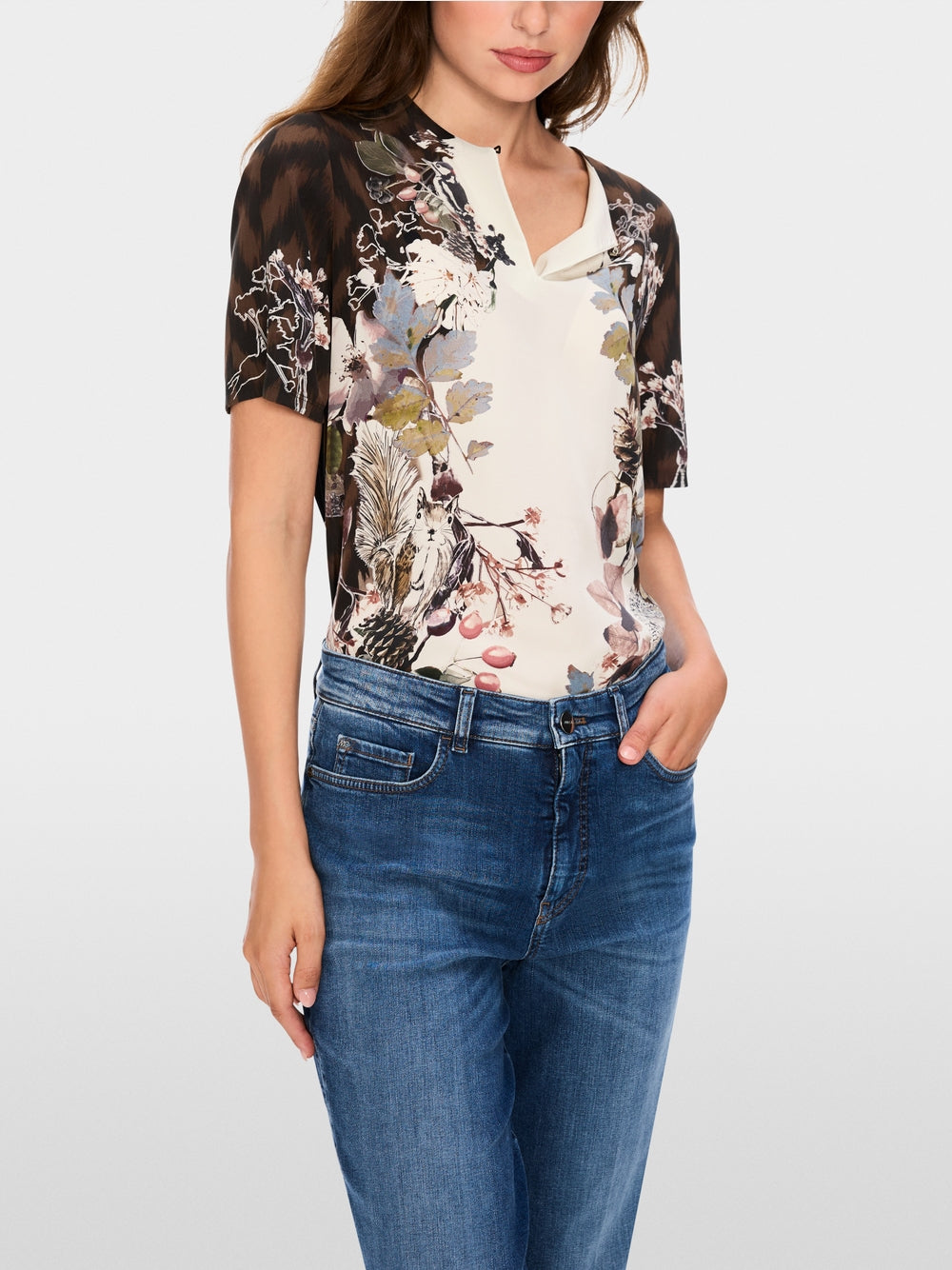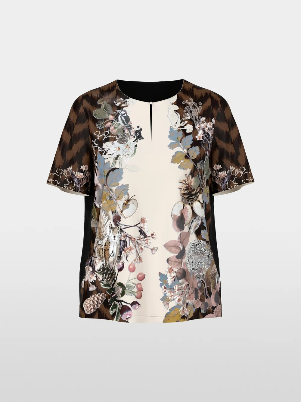 Marc Cain Printed Silk Slip-on blouse with short sleeves