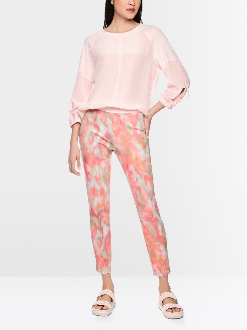 The SOFIA feature a slightly cropped leg length, a regular waist height and a close-fitting cut. The jersey fabric is pleasantly soft and elastic. These trousers also have an elasticated waistband, which guarantees a high level of comfort. The colourful all-over print with elegant pleats is a real eye-catcher.