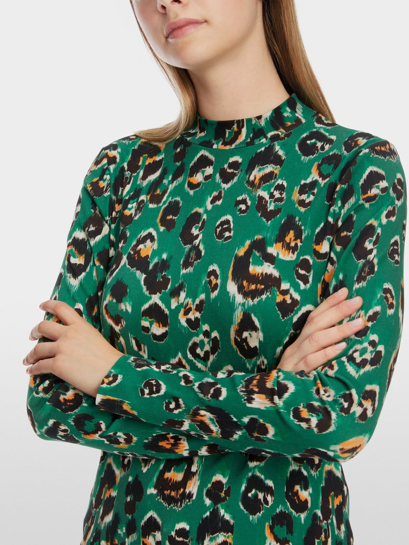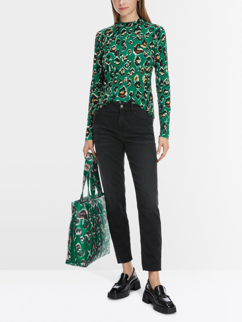 Marc Cain Green Long Sleeve T Shirt with Leopard Design