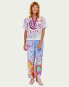 Walk your spiritual path in the Lydia pants, adorned with mystical runic scripts, sacred geometry, and empowering affirmations. These statement pants feature purple and pink tie-dye with hand-drawn symbols including spirals, ladders, hearts, and protective runes throughout.