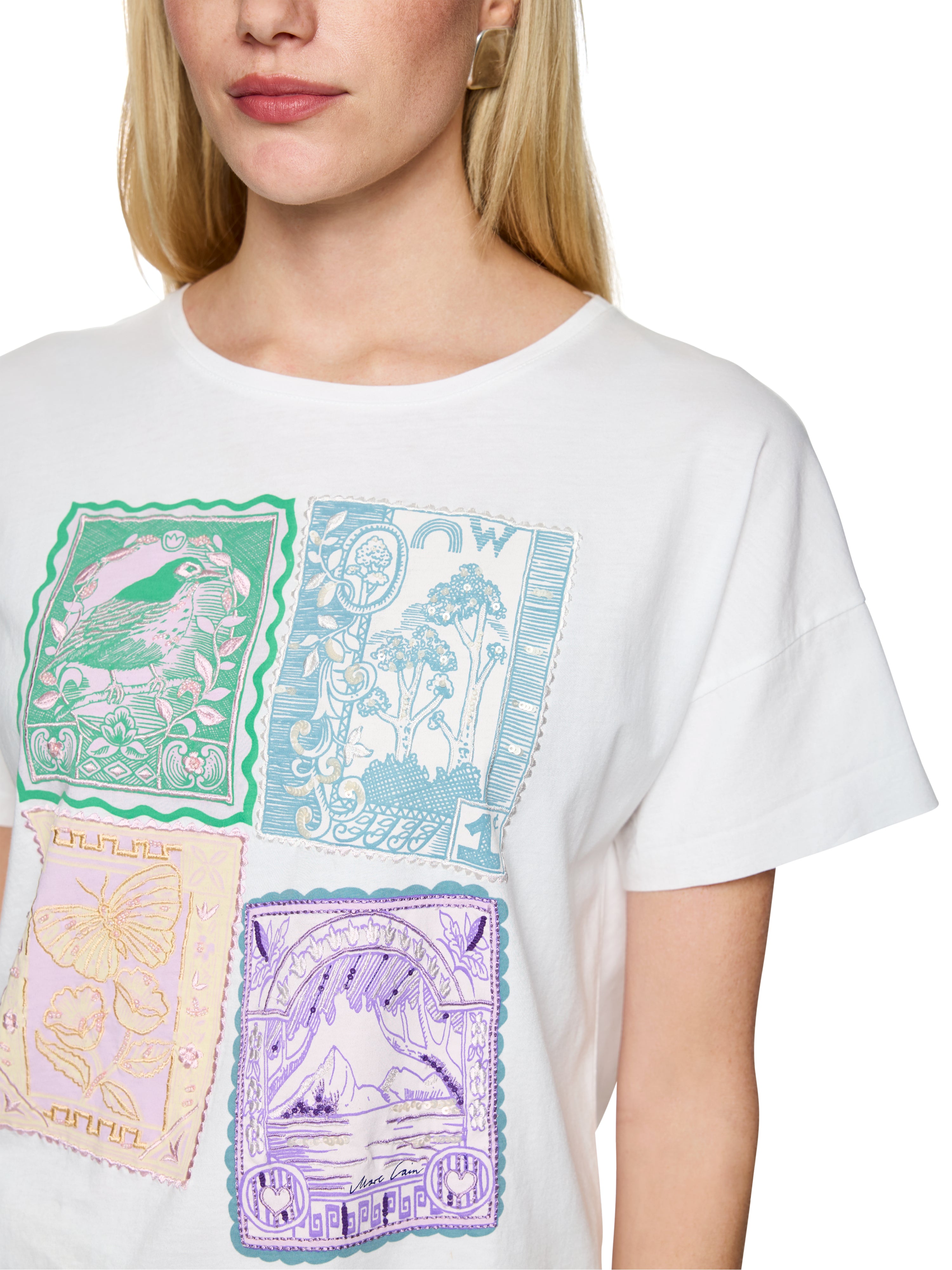 Marc Cain White Embellished Cotton T Shirt with Stamp Print