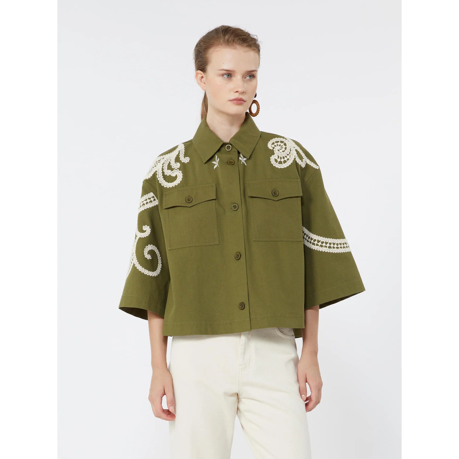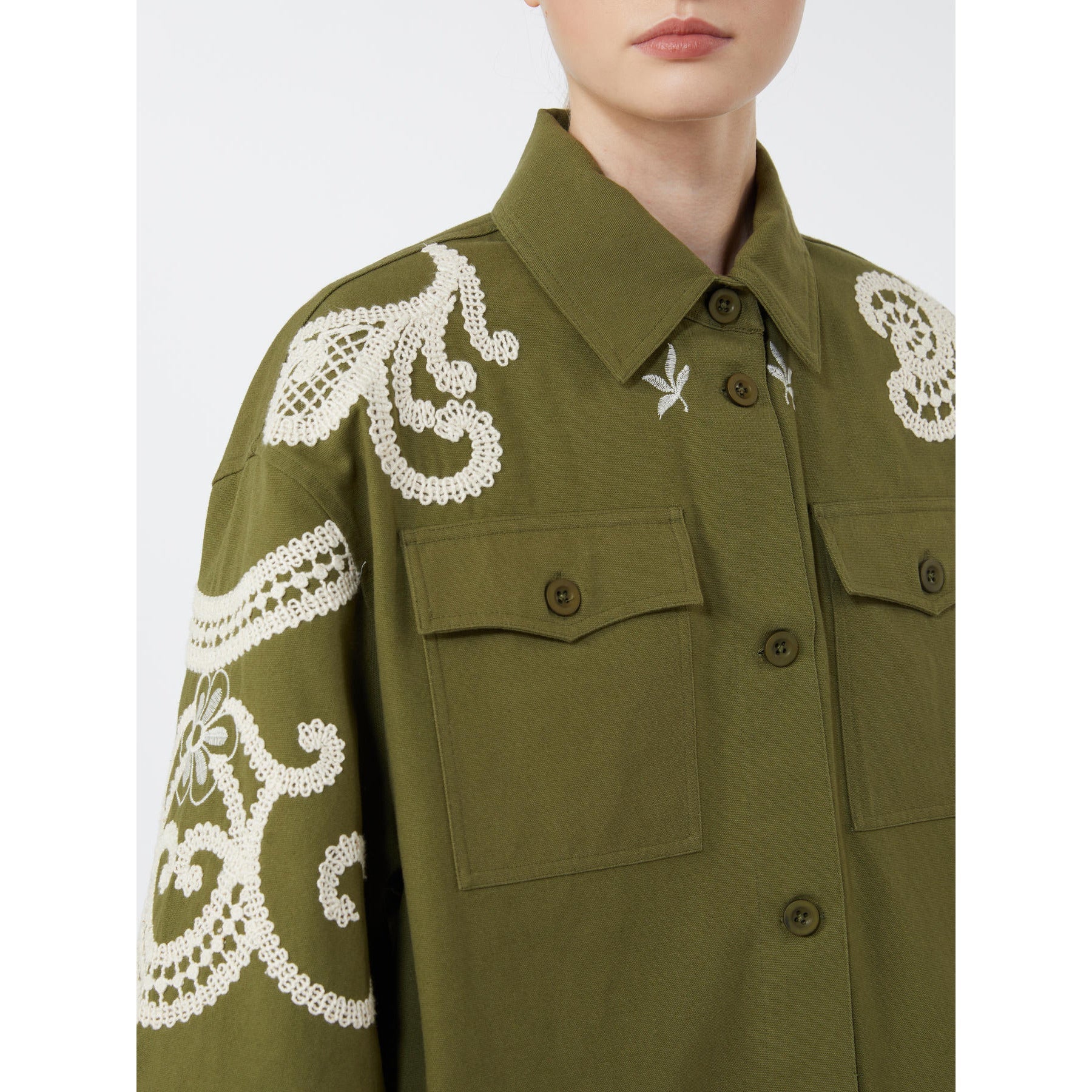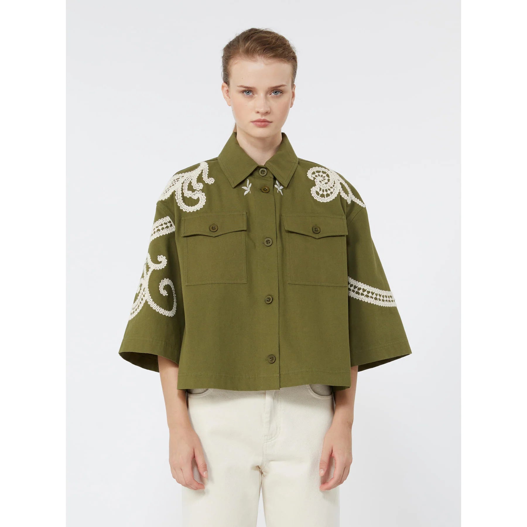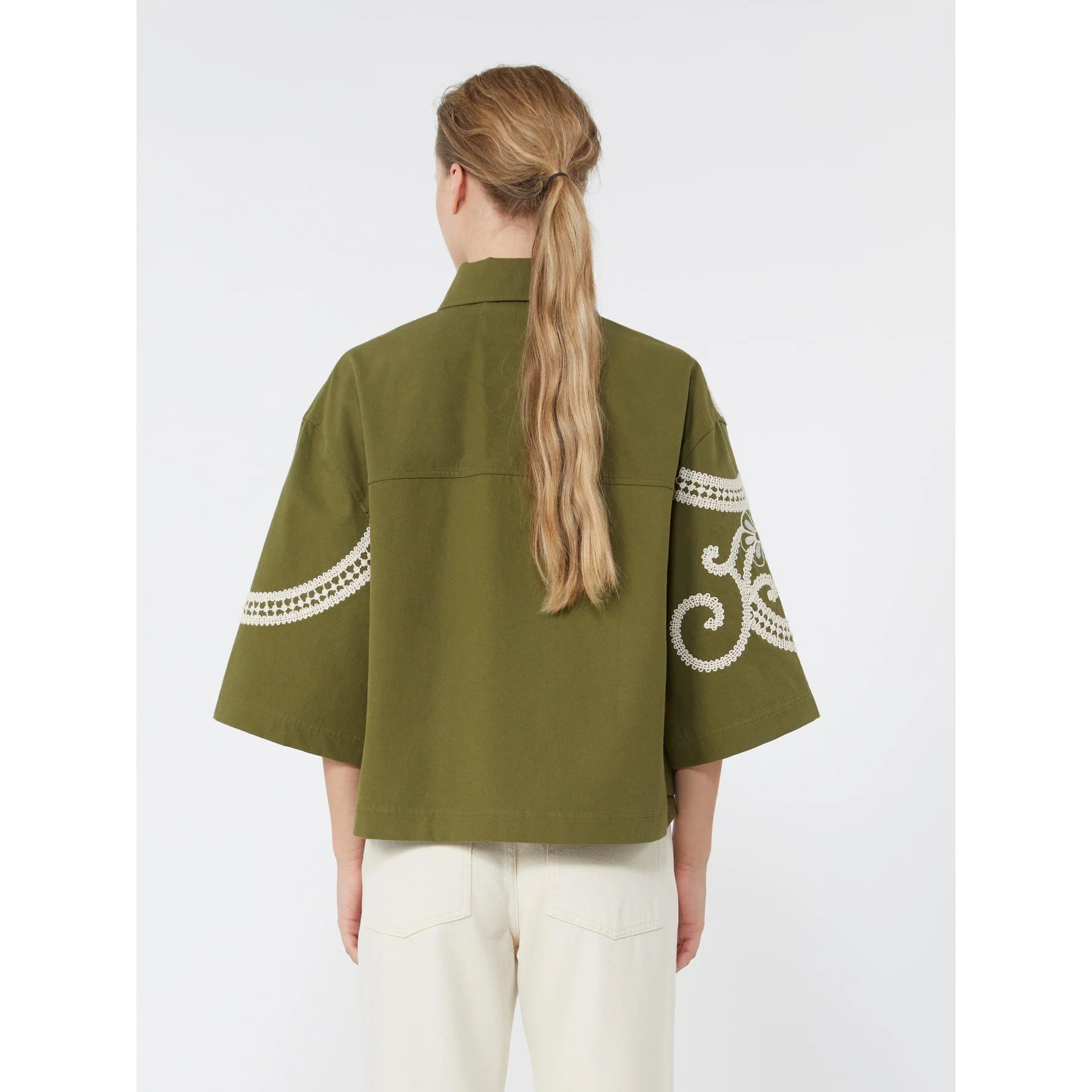 Max Mara Weekend FONTE Cotton blouse with lace and embroideries WHITE