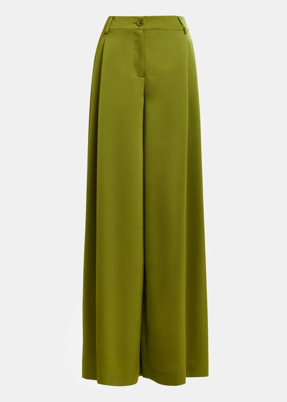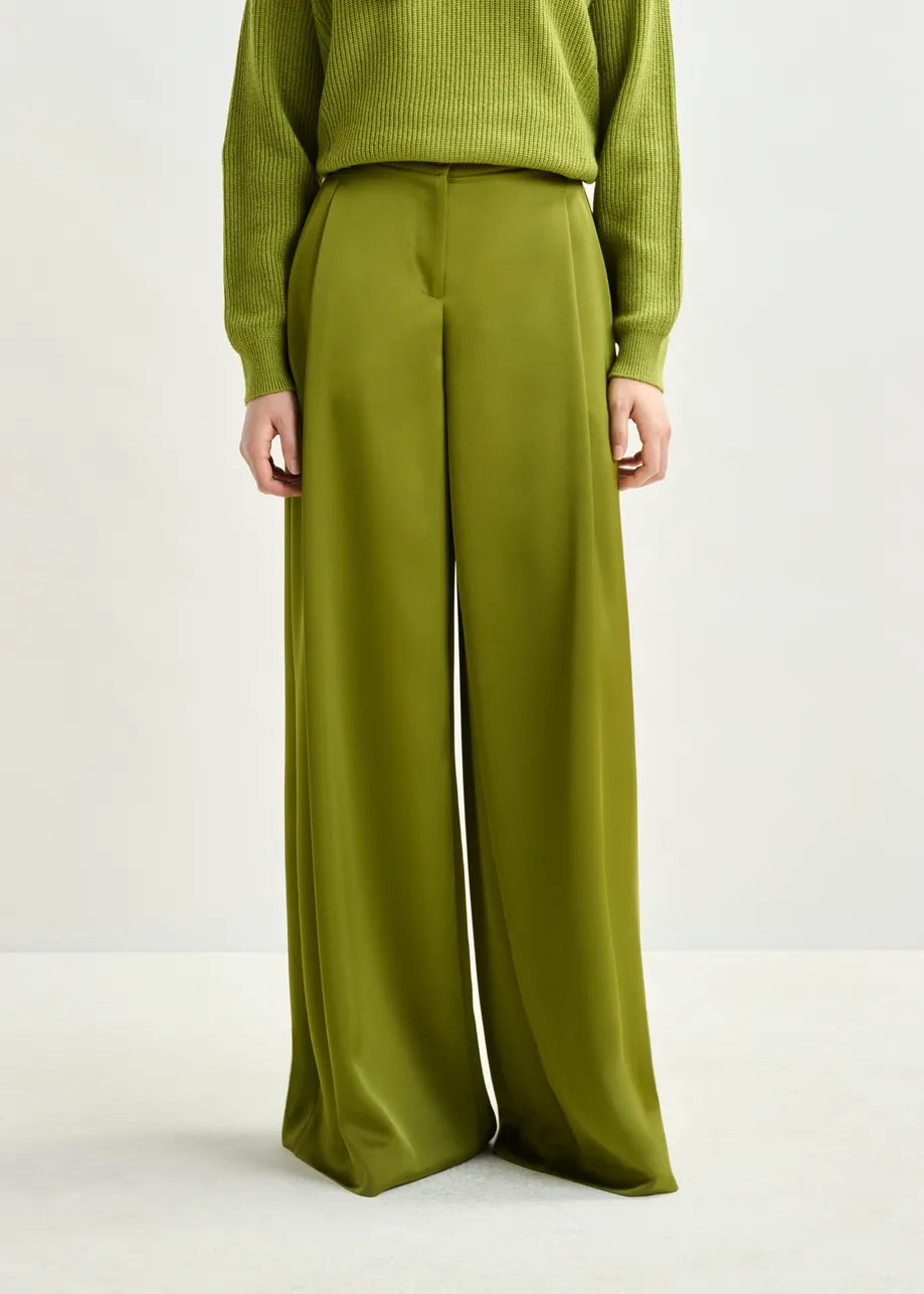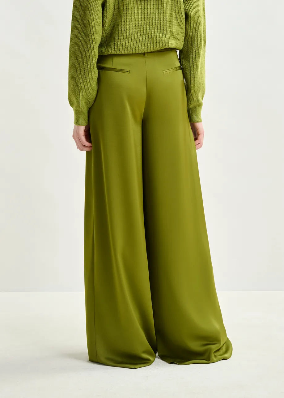 Esentiel Antwerp IXIE Olive green wide-leg satin pants