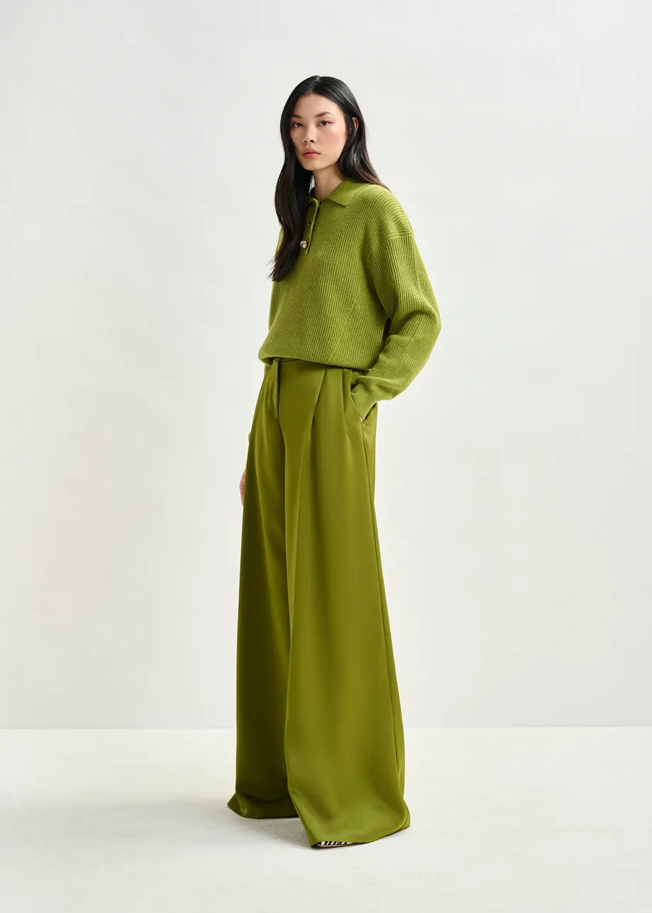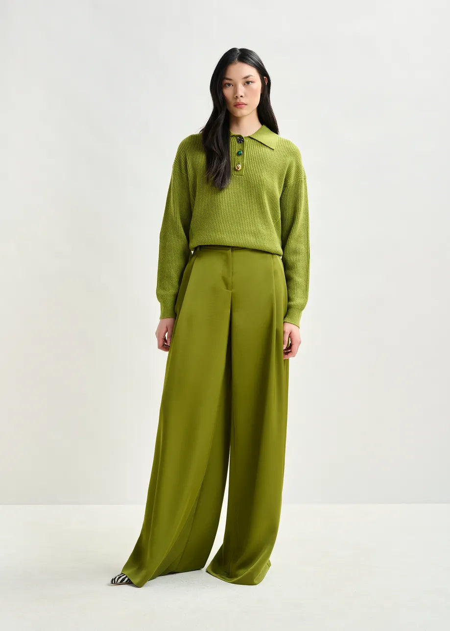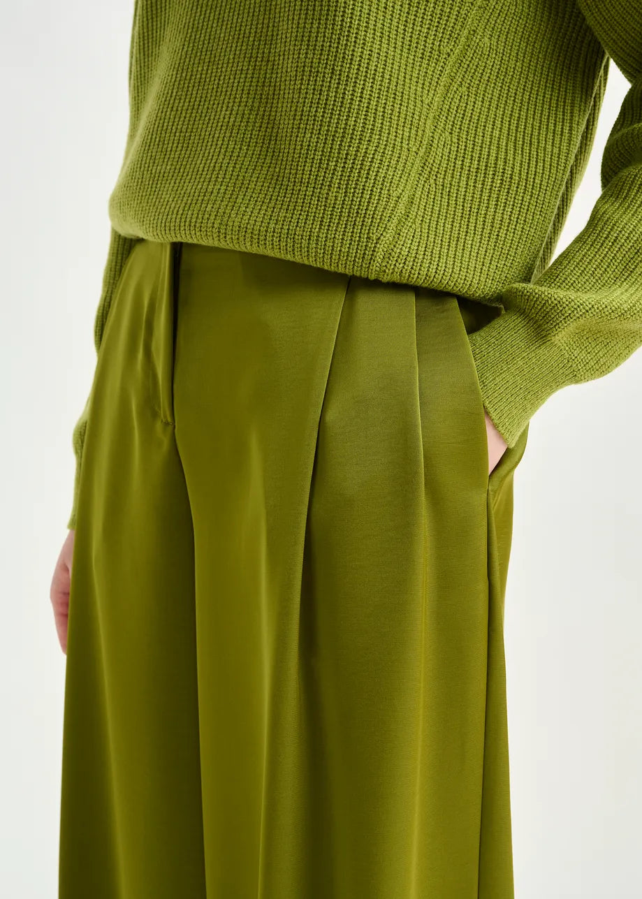 Esentiel Antwerp IXIE Olive green wide-leg satin pants