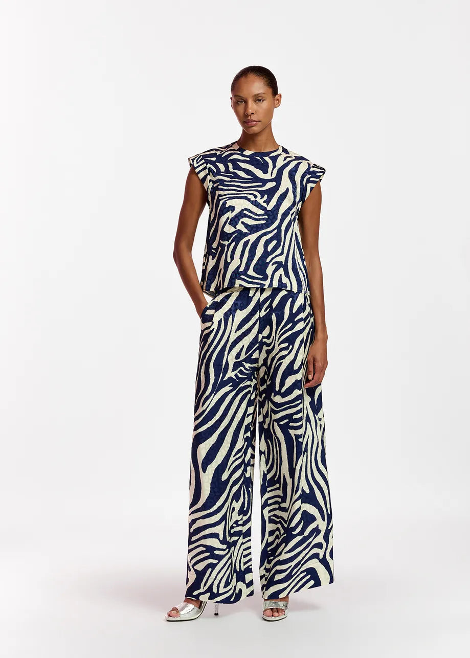 Essentiel Antwerp Feebee Navy blue and off-white zebra-print top