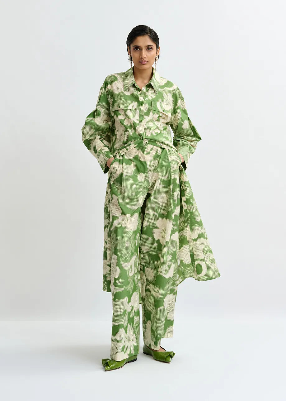 Essentiel Antwerp JAUDI Green and cream cotton-blend floral-print shirt dress
