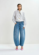 Essentiel Antwerp JO1 Blue floral-print barrel-leg cropped jeans