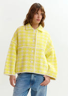 Essentiel Antwerp JOKING Yellow and off-white houndstooth knit cardigan