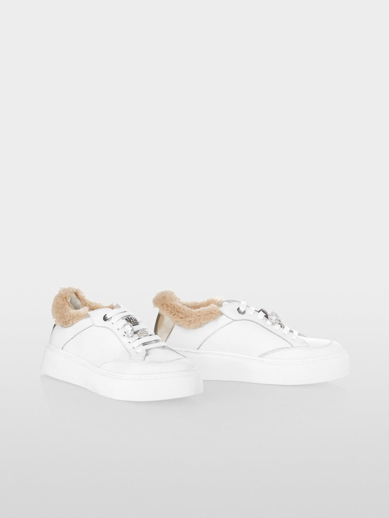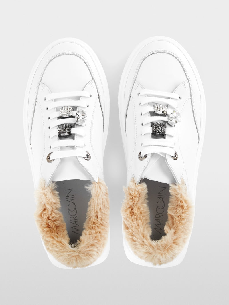 Marc Cain White Sneakers Made of Calfskin with Fur
