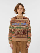 Loose-fit jumper, embellished by a jacquard knit over a rich links-stitch texture.