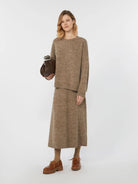 Max Mara Weekend SIBARI Hazelnut Brown Crew-neck cotton and wool knit jumper