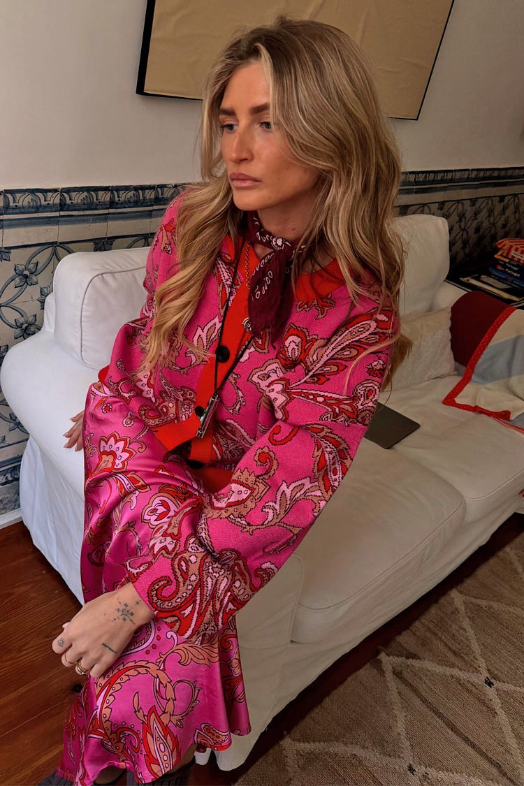 A knit we are truly proud of - soft touch, in a slightly boxy fit, that feels so weighty and luxe. A bold pink base with an intricate paisley print and thick ribbed borders in a complimenting bright red. Adding a touch of colour to your new year wardrobe, it's an NFD favourite!