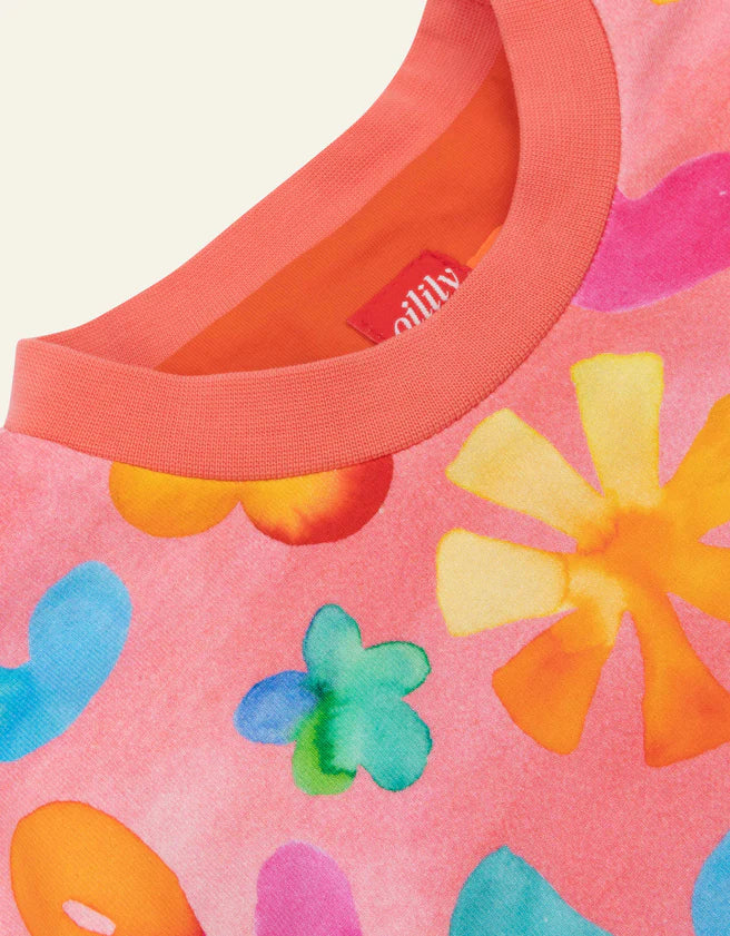 The print Oilily Watercolours was made by painting and fading out the colours to create a dreamy effect. Wear this sweater and you'll immediate start daydreaming about ice creams that never melt, mega cotton floss and flying away in a hot air balloon. - Organic Cotton with Elastane - Loose fit - Made in Portugal